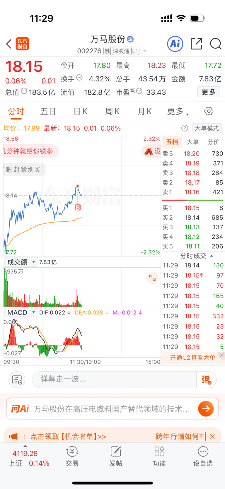 $万马股份(SZ002276)$ 这买慢一点都挂不到这个位置