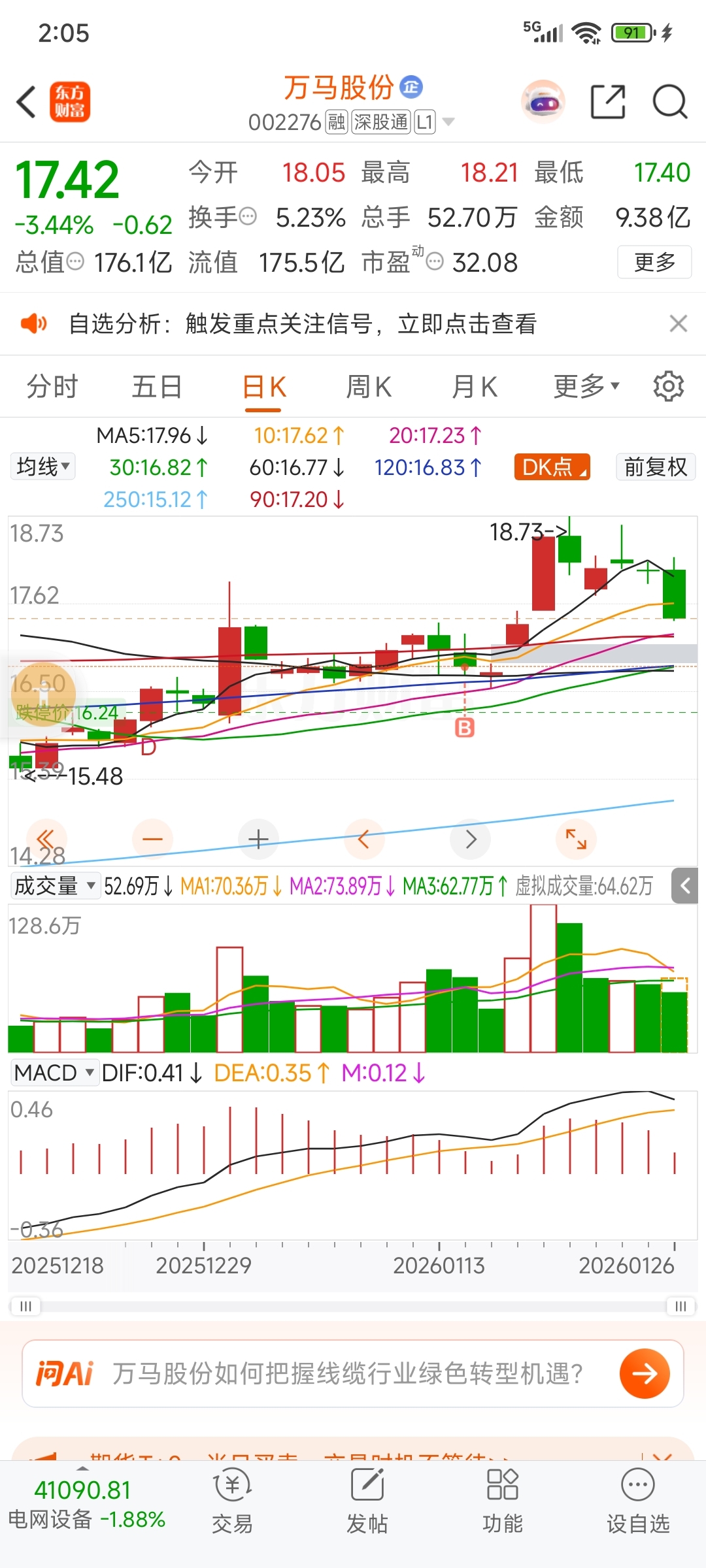 $万马股份(SZ002276)$ 看下20日线的支撑力度吧,年前就玩儿这一个,别给玩儿砸喽