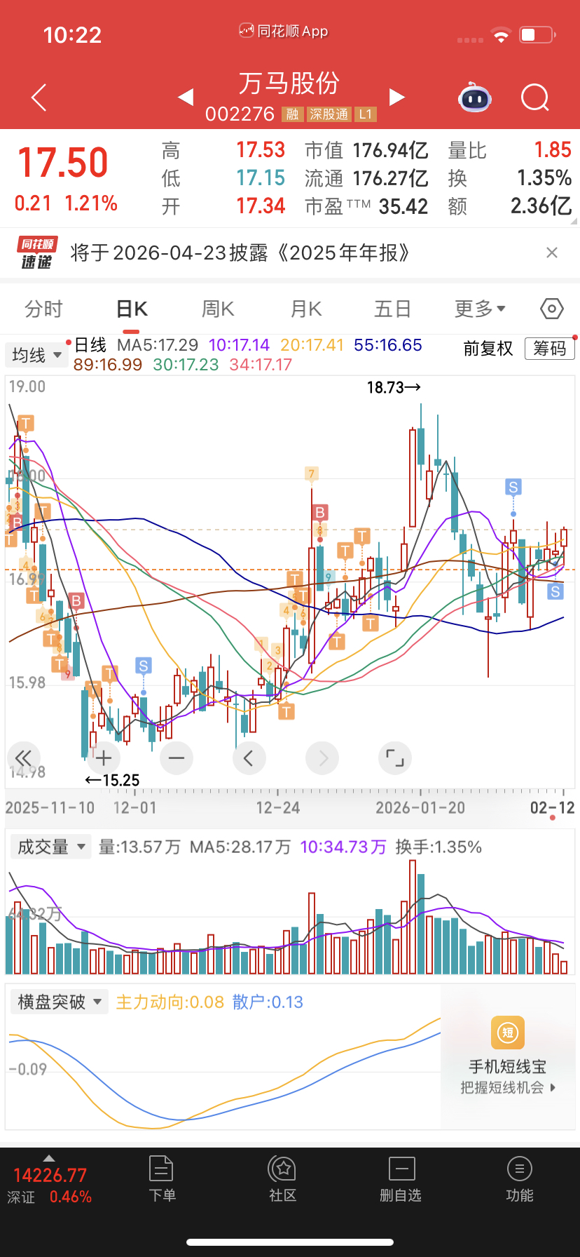 $万马股份(SZ002276)$ 就盯着我这几万股?卖了就涨了……