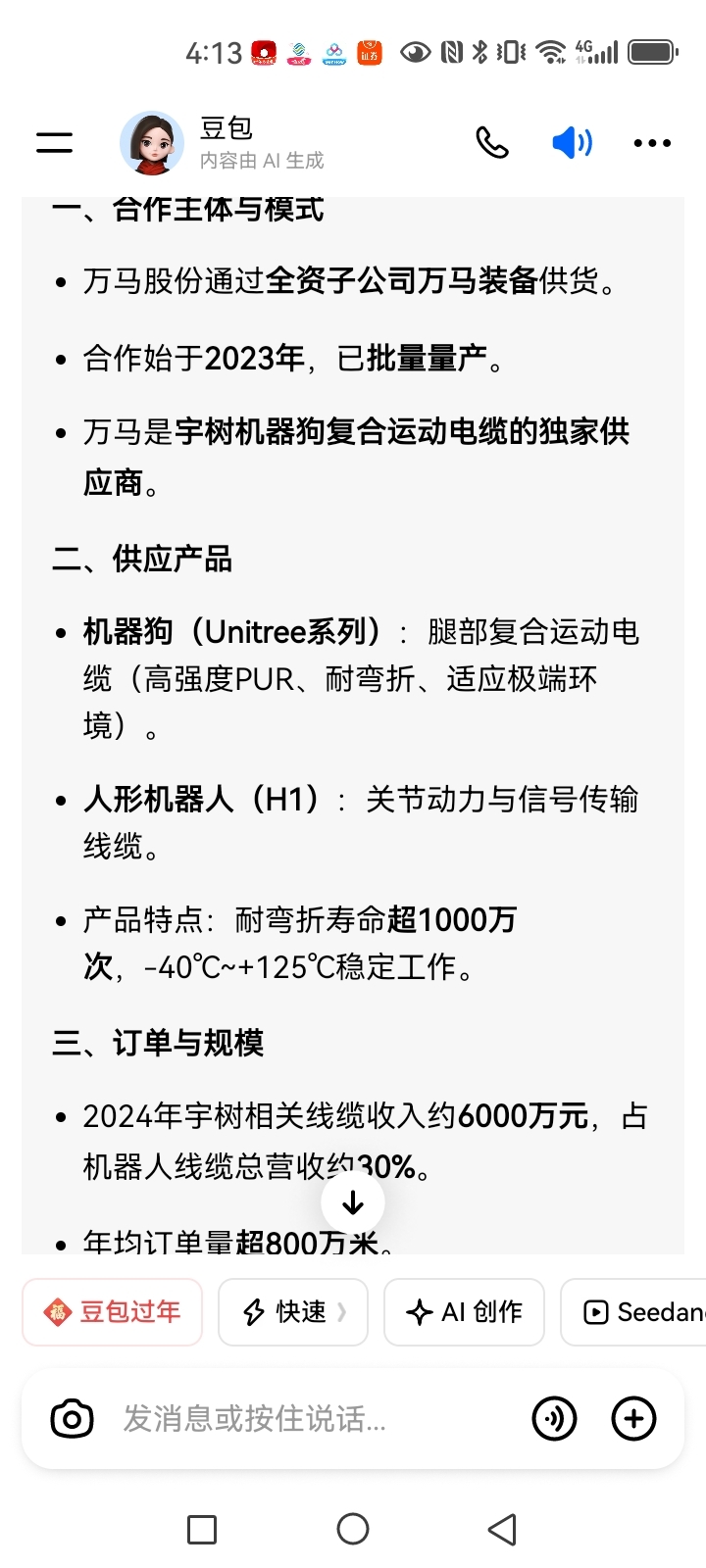 $万马股份(SZ002276)$ 万马股份是宇树机器人电缆独家供应商