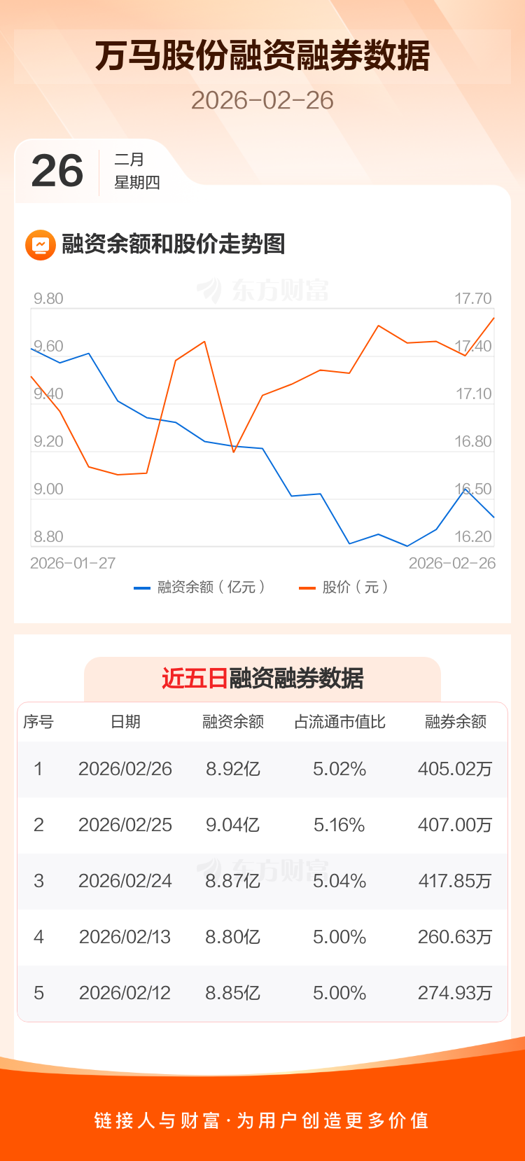 交易所最新数据显示,万马股份于2026年2月26日获融资买入7610.29万元,融资偿还8724.83万元,当日融资净偿还1114.55万元。目前,该股融资余额8.92亿,占流通市值比例为5.02%。