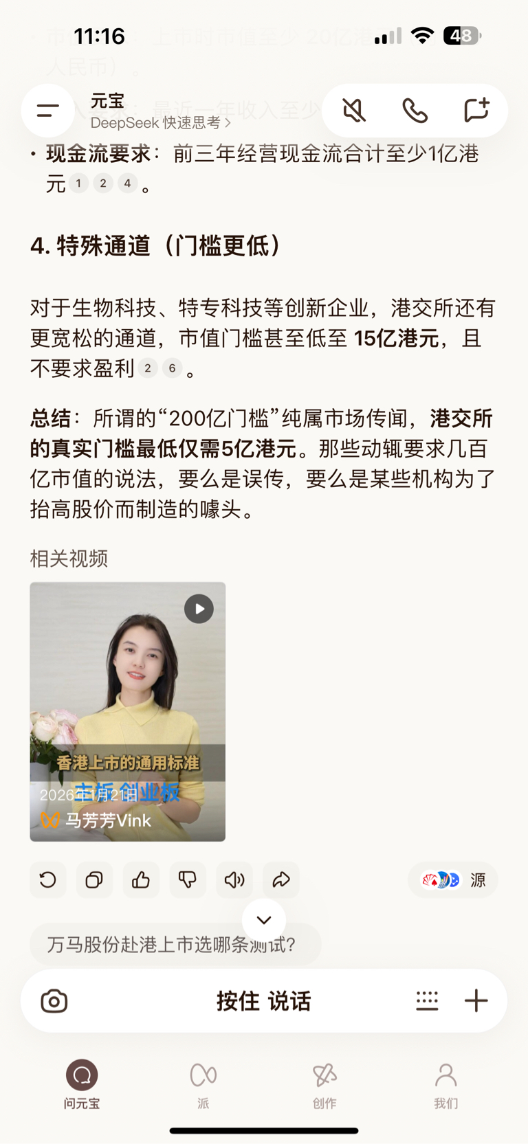 我刚才给下面一个人评论他造谣港股到200亿三百亿上市门槛,不知道怎么被人删掉,我