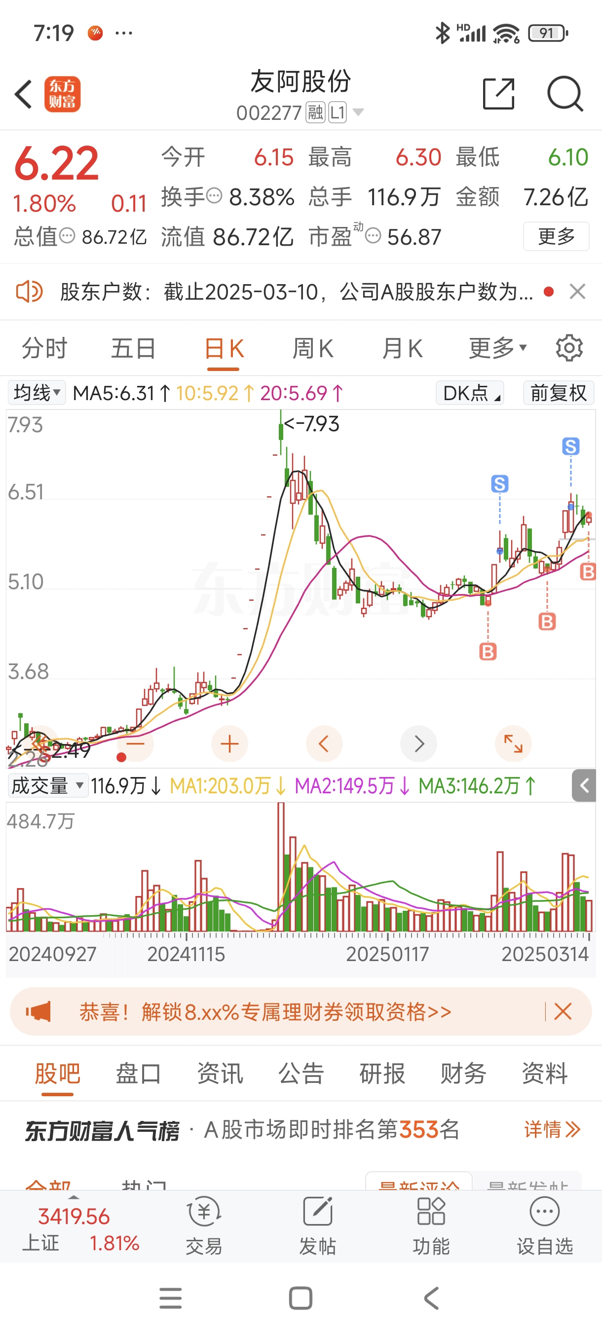 $友阿股份(SZ002277)$ 昨天买回可以多一万股。。今天买回才多5千股。太让我失望。正常还是要调整。大盘太不给力了。