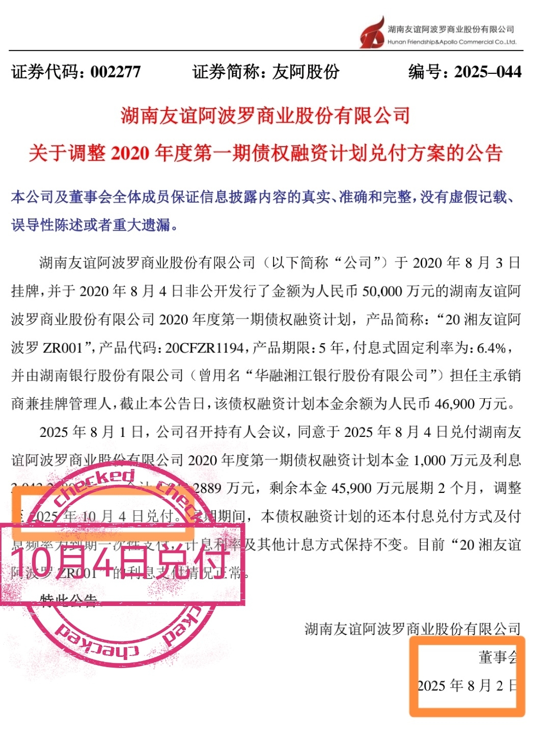 $友阿股份(SZ002277)$ 这个估计要等到开盘才发债权兑付结果