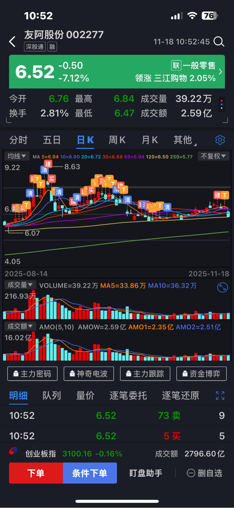 $友阿股份(SZ002277)$ 还好昨天出来一大半