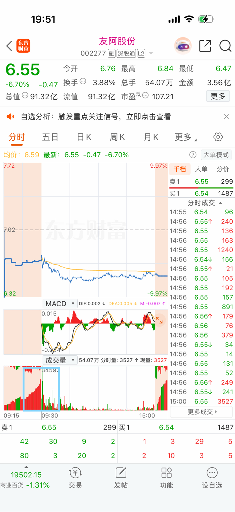 $友阿股份(SZ002277)$ 集合竞价也蛮好的!都是看多的...为什么这样砸盘!!谁知道啊
