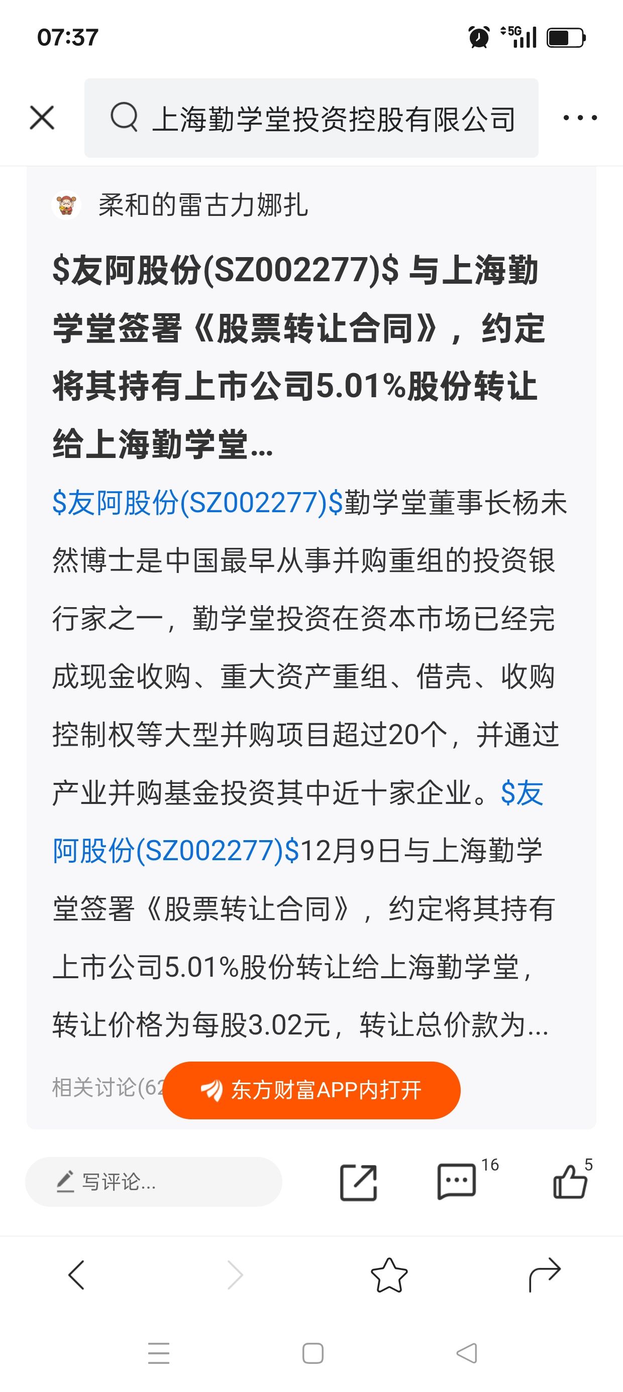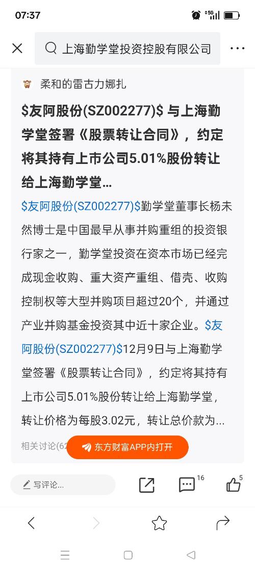 勤学堂是股市大赢家,St中迪从一元多涨到现在12元多,勤学堂持股5%以下。勤学堂持有友阿5%以上,又是收购尚阳通,股价应该是中价股,现价偏低,买入评级!