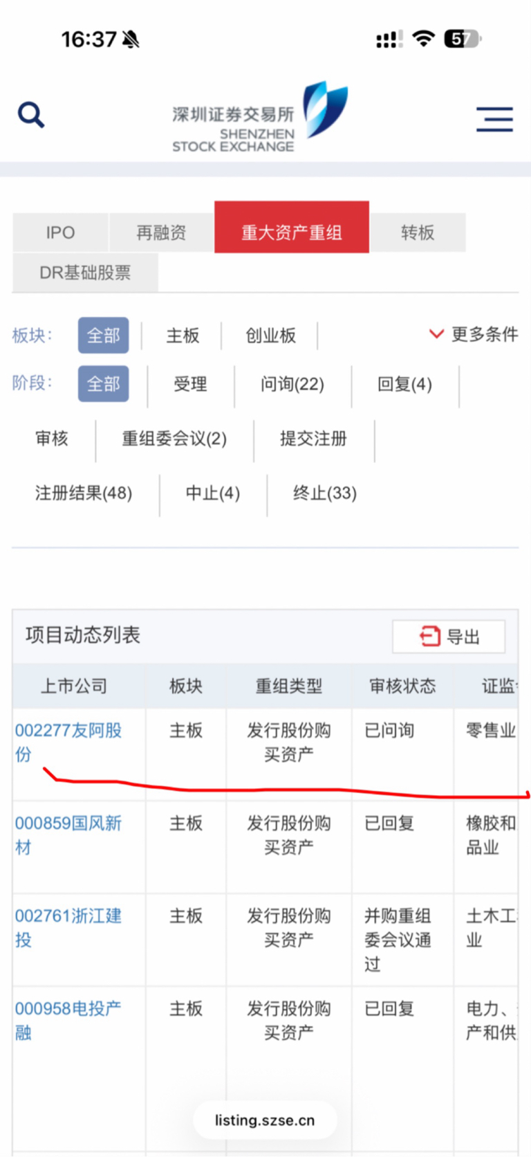 $友阿股份(SZ002277)$ 今天友阿已经恢复重组审核,一同中止的这几家只要能完成材料更新的。通过审核将是大概率事件