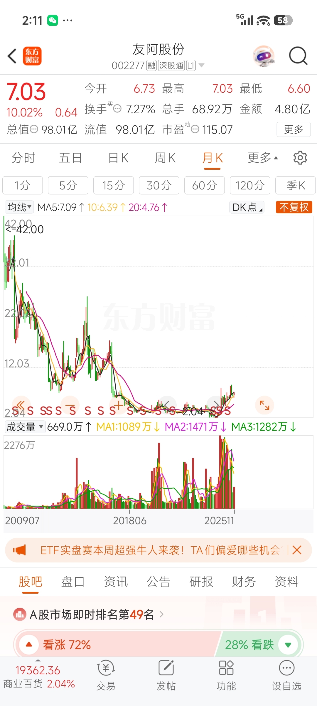 $友阿股份(SZ002277)$ 横有多长竖有多高,找找跨年妖的感觉。朋友们阿。一起干吧。