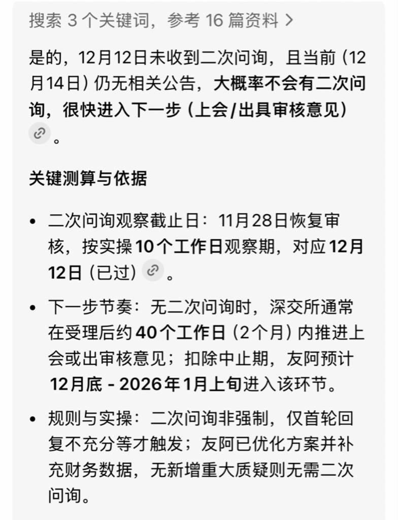 刚问豆包,12日都没收到二次问询,深交所估计很快回复