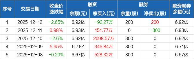 友阿股份:融资净偿还92.27万元,融资余额6.92亿元(12-12)