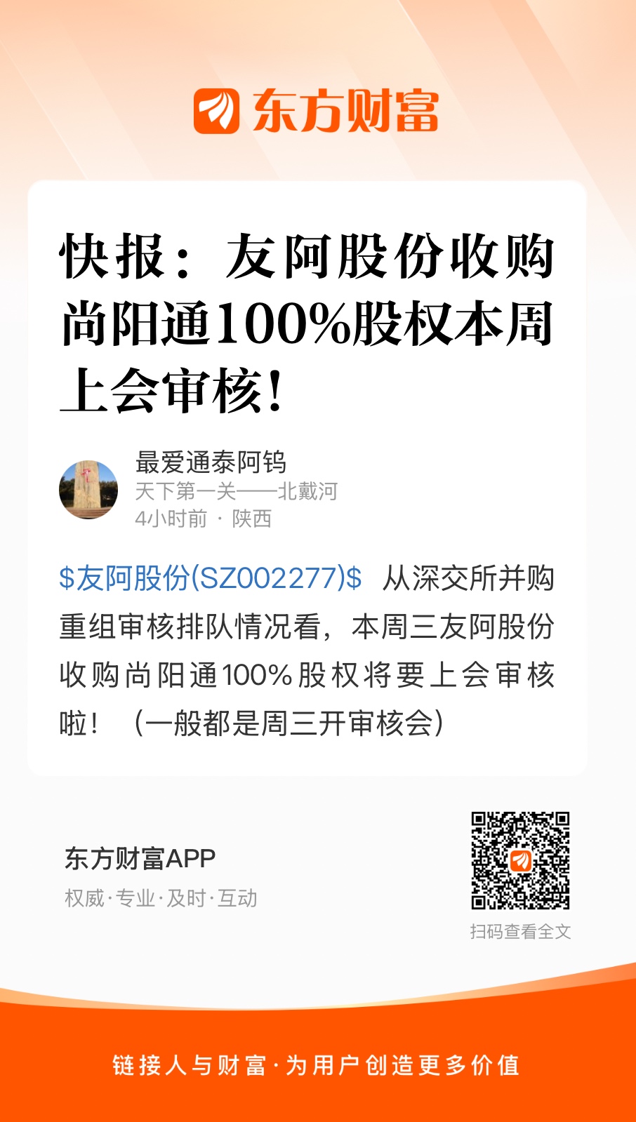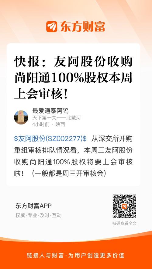 $友阿股份(SZ002277)$ 从深交所并购重组审核排队情况看,本周三友阿股份收购尚阳通100%股权将要上会审核啦!(一般都是周三开审核会)