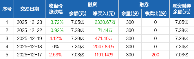 友阿股份:融资净偿还2330.67万元,融资余额7.05亿元(12-23)