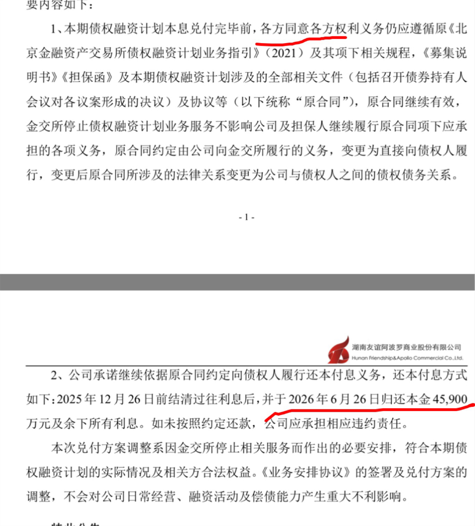 $友阿股份(SZ002277)$ 那些整天拿着债务唱空的人可以消停了,公司已经和债权人达成一致到26年6月再偿还,接下来可以将精力和资金全部用于收购尚阳通的事情