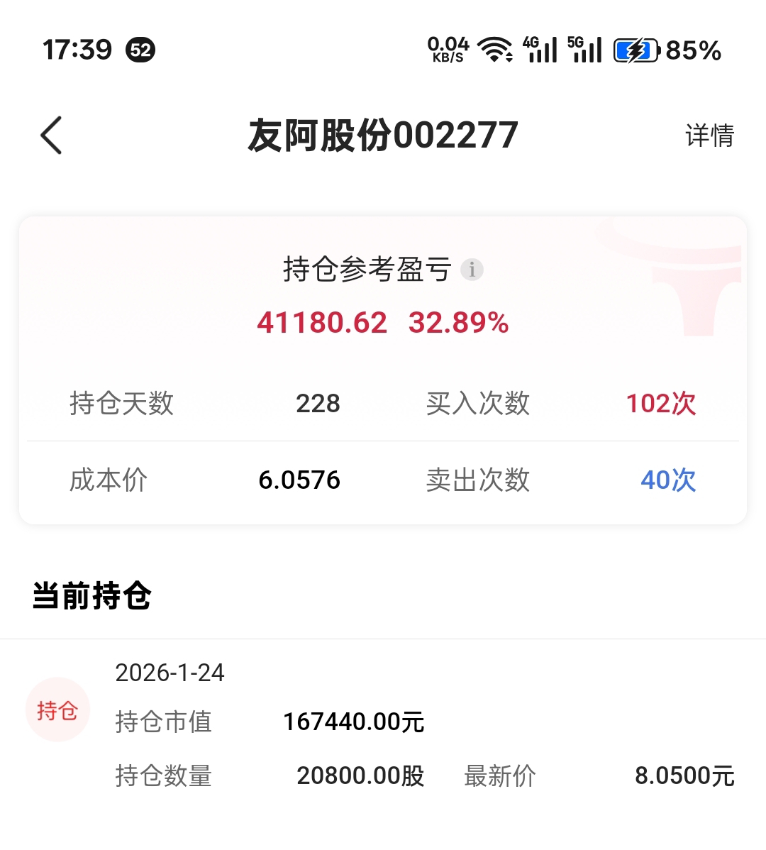 $友阿股份(SZ002277)$ 持仓7个多月,反复T,成本做到6.05,目前盈利32%。这大半年虽没有挣到大钱,盈利就好,知足就好。