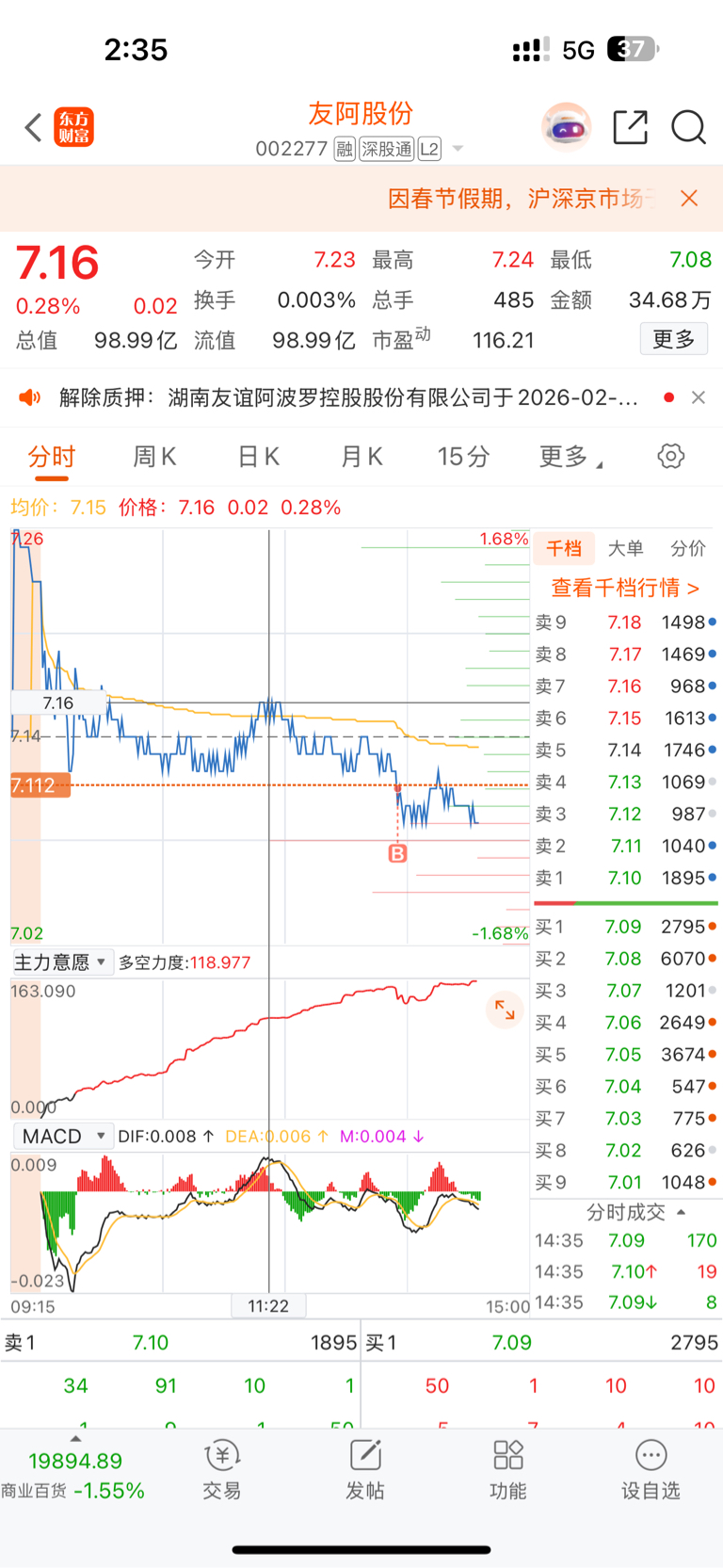 $友阿股份(SZ002277)$ 11点22挂的单,没想过能成交,都忘记了