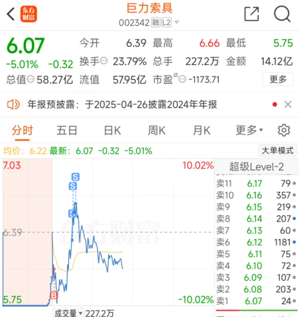 这是什么市场,我这种s,多,头,都做的好辛苦…$巨力索具(SZ002342)$