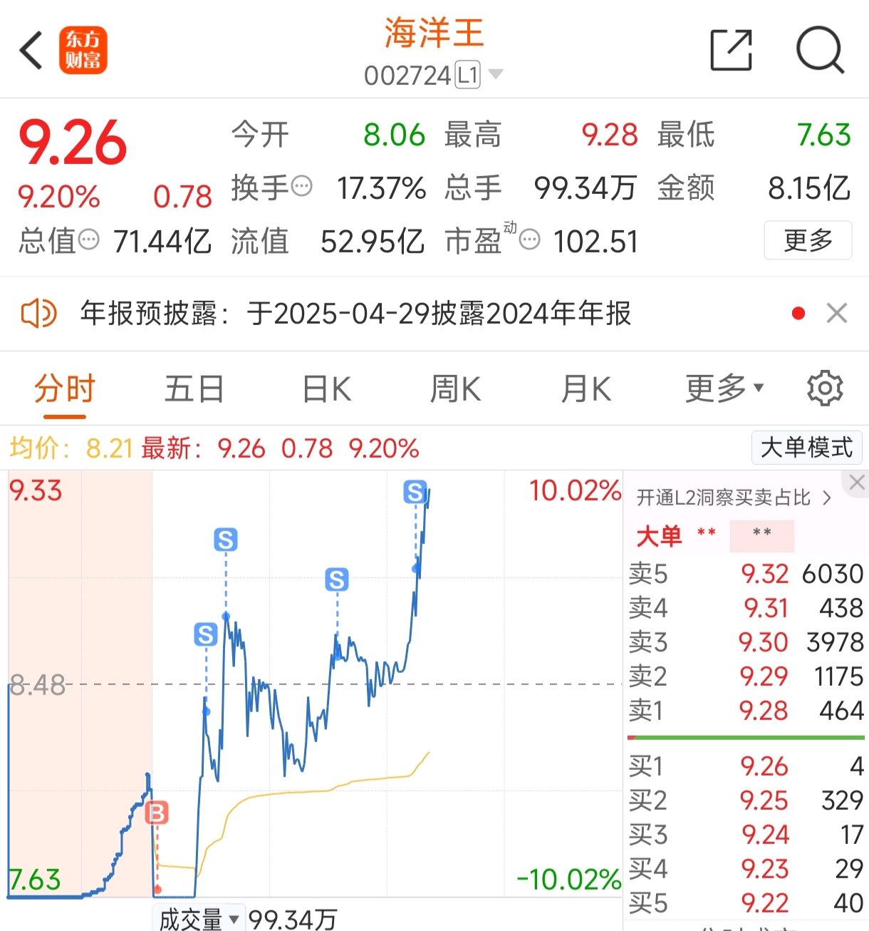 又主动送s了…$海洋王(SZ002724)$