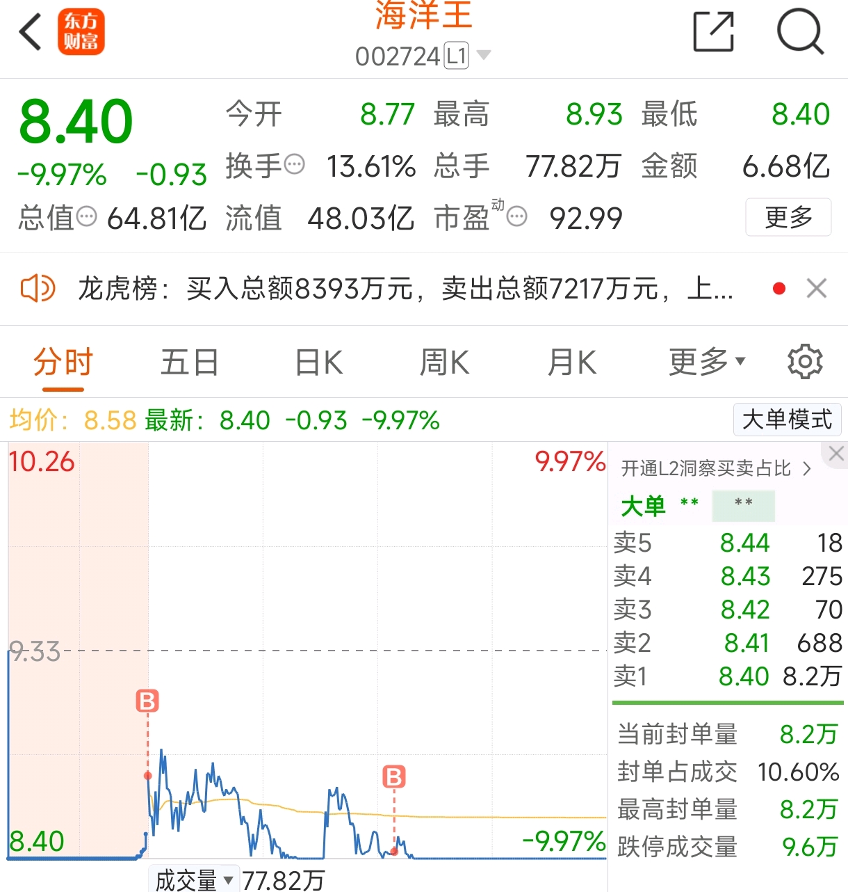 给个板砸机会?$海洋王(SZ002724)$