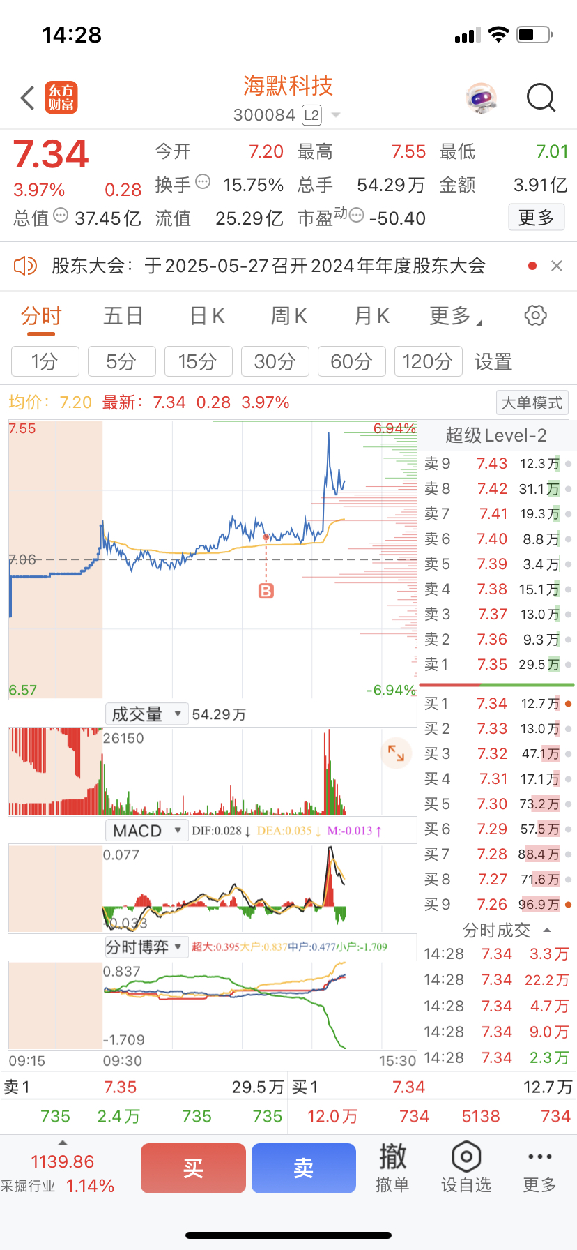 昨天买的天海防务,今天买了海默科技,就是没买你。错老远了。