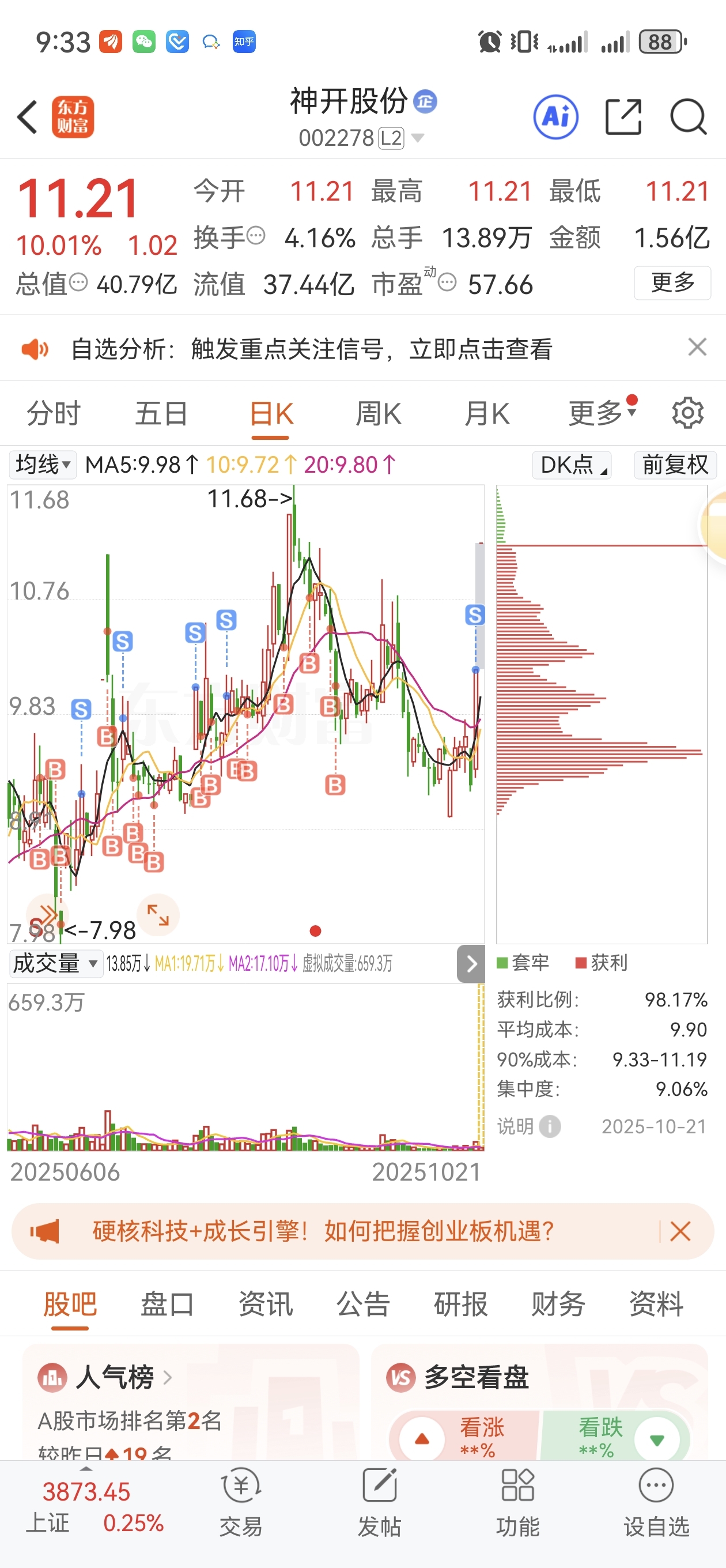 $神开股份(SZ002278)$ 拿了那么久,高位加仓,一开始盈利40%没走,昨天一大早挂涨停尾盘突然成交了,没赚钱的命啊