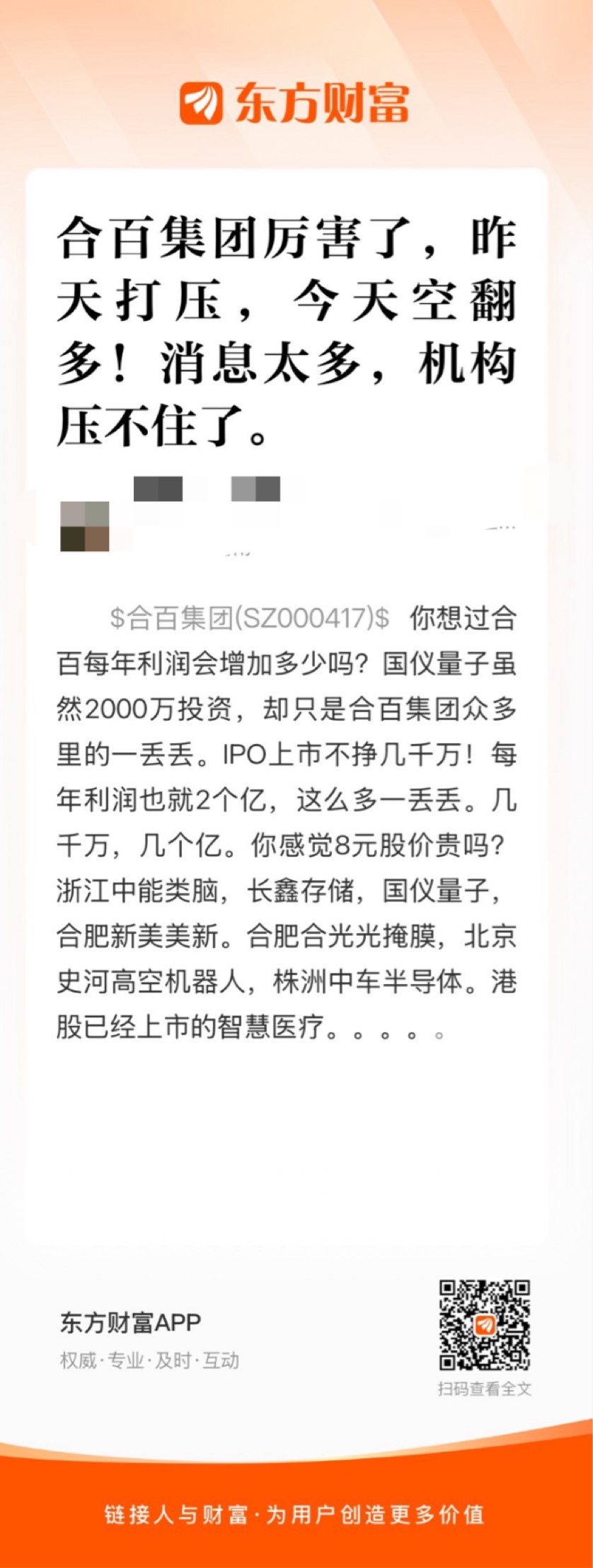 温馨提示: 1.根据《证券法》规定,禁止编造、传播虚假信息或者误导性信息,扰乱证券市场;2.用户在本社区发表的所有资料、言论等仅代表个人观点,与本网站立场无关,不对您构成任何投资建议。用户应基于自己的独立判断,自行决定证券投资并承担相应风险。《东方财富社区管理规定》