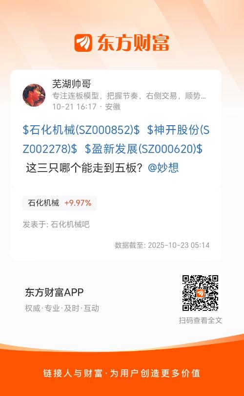 $石化机械(SZ000852)$ $神开股份(SZ002278)$ $盈新发展(SZ000620)$ 这三只哪个能走到五板?@妙想