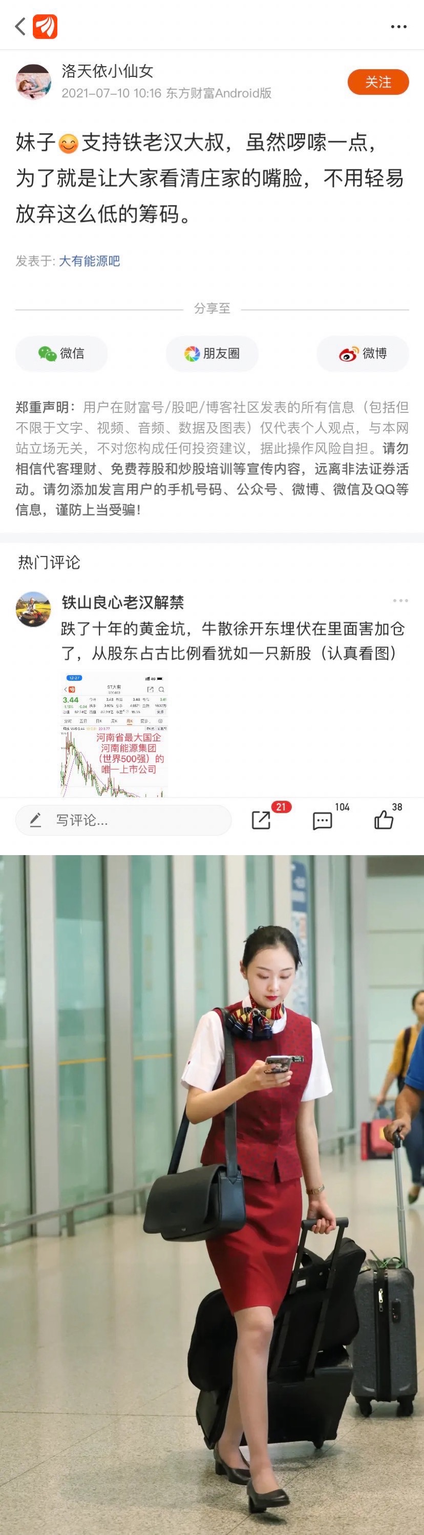 2021年7月份老汉我进场大有能源两个月期间天天在大有能源吧里溜达发言,这是吧里第一个有智慧眼睛发现了老汉并敢在吧里发声支持老汉且呼吁大家不要放弃铁底筹码的小仙女,现在回想起,她犹如一位大有能源这趟航班上的靓丽空姐,在飞机滑行起飞前提醒大家“系好安全带”。