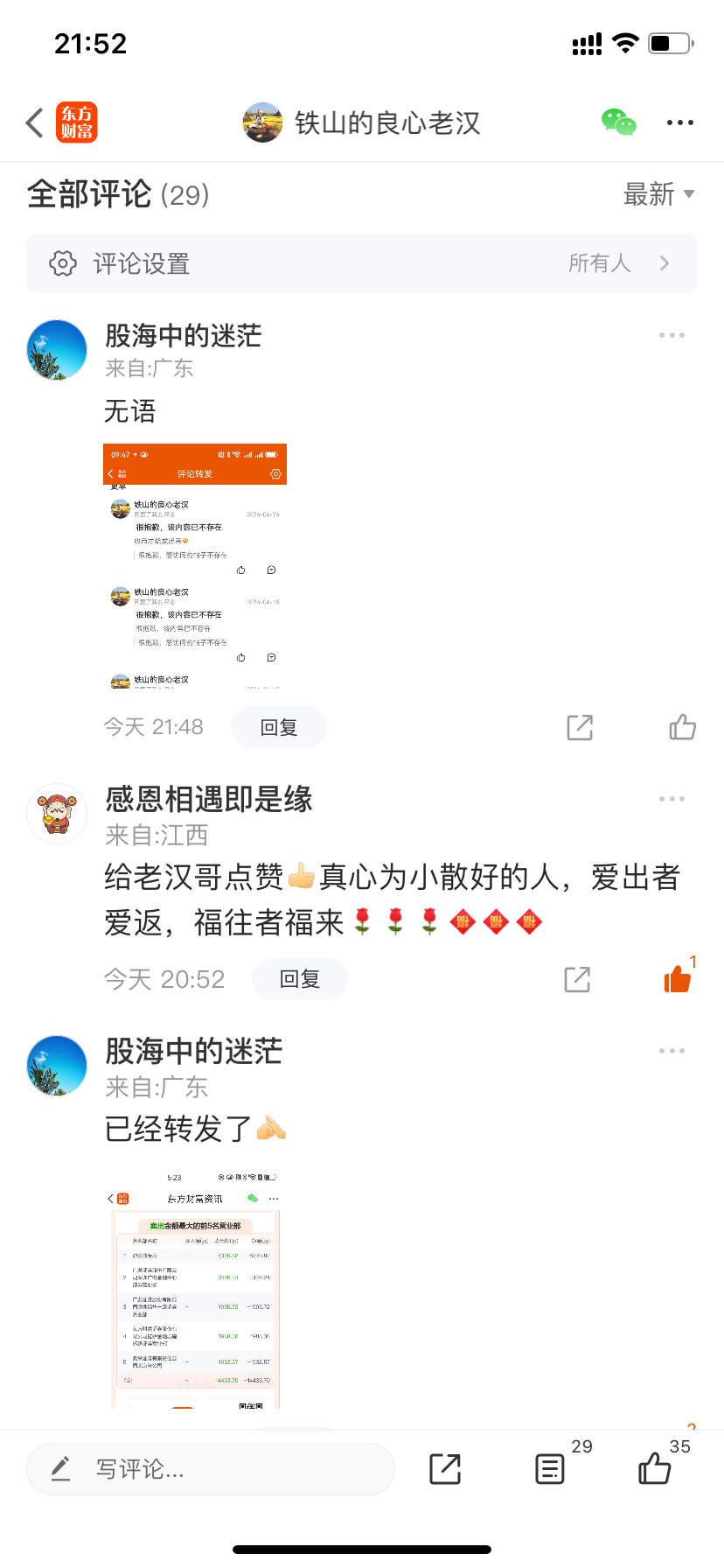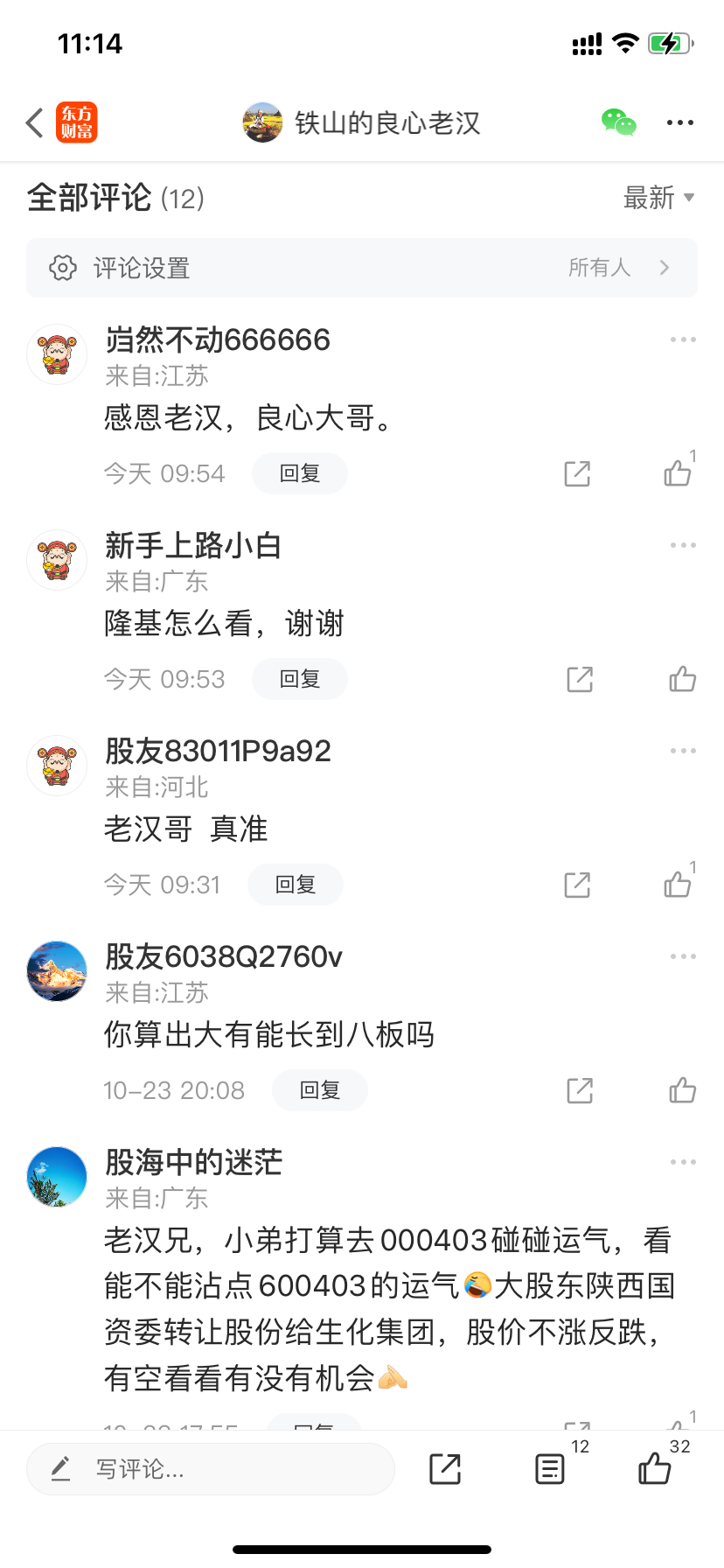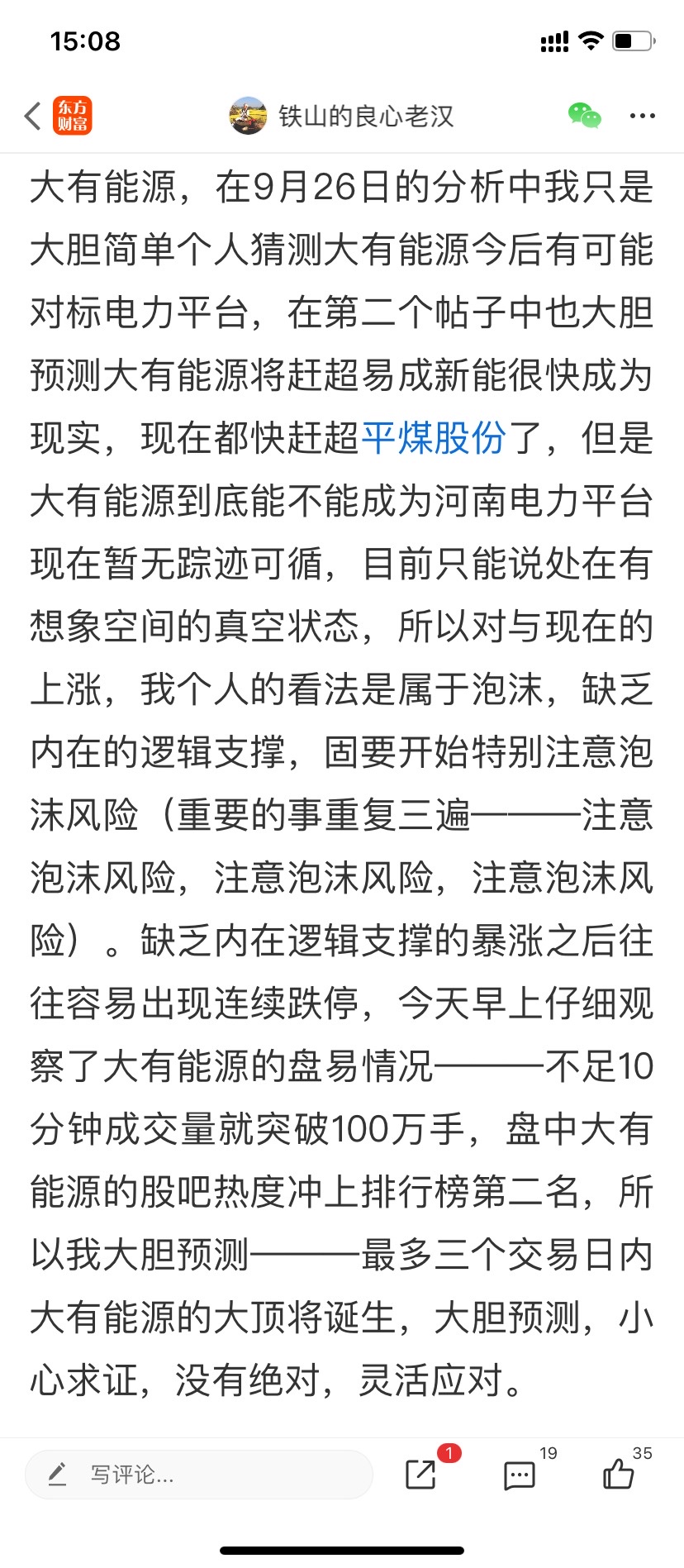最后,简单聊聊近四年多在大有能源的经历和感受:网很多人知道老汉我一直坚守大有能源四年多了,期间受到不少无知散户的冷嘲热讽和大有能源老庄的各种黑手段刁难(反复各长短周期的禁言、老号被封、贴子莫名其妙不见、贴子被控制一直下沉以及新号无法在全网任何的帖子下方跟帖回复),所有一切往事所承受的刁难都成了过往云烟,或许没有过去的刁难就没有今日的收获!