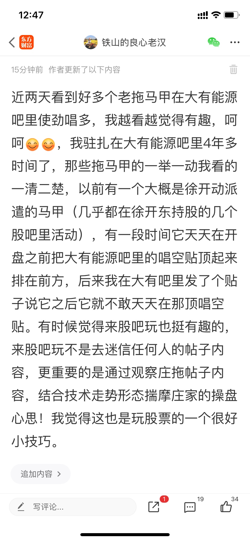 对,对,对,你们记性真好,看你们一说,我也慢慢回想起来,那个马甲好像当时叫做“超圆观盘”,它跟鬼一样丑陋,我当时发的贴你们都看懂了,我当时的判断“超盘圆规”这个小马甲是与河南大V“洛阳上官峥嵘”相关连的,当时“洛阳上官峥嵘”在大有能源大底是唱空,它们两个还眉来眼去一唱一和唱空,那时候我要发贴仔细提醒大家,但是帖子一发出去就莫名其妙不见了,发了非常多次都莫名其妙不见了,后来只能含糊说了些内容和图提醒大家,原来你们都看懂了,厉害