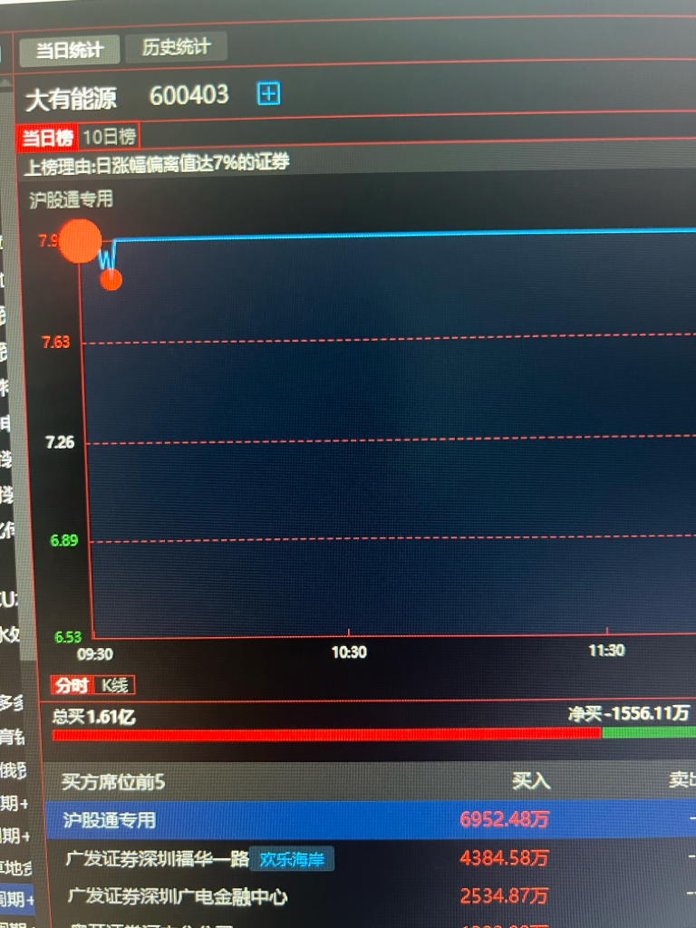A股最有格局的顶级游资“欢乐海岸”21日周二在第6个涨停板打板买入大有能源438