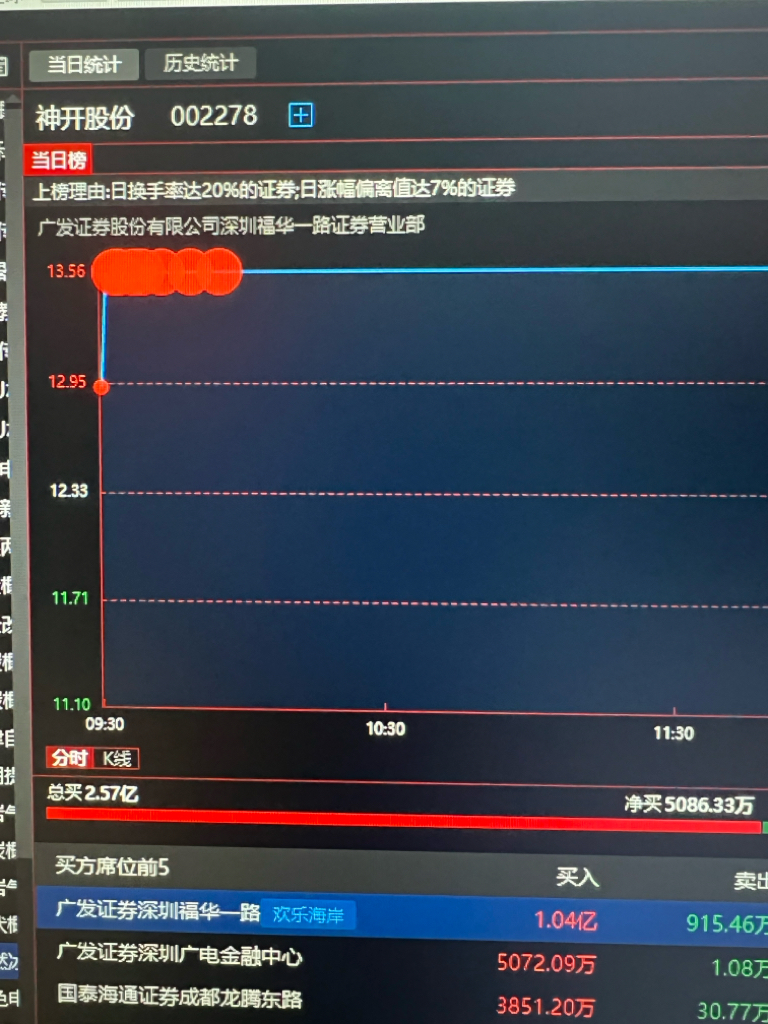 $神开股份(SZ002278)$ A股最有格局的顶级游资“欢乐海岸”21日周二在第6个涨停板打板买入大有能源4384万,截止今天已经吃了2个涨停板,并且还在格局!今天又大手笔板上扫货神开股份1.04亿,而人神共愤量化开源今天出完了6641万,期待神开明天继续涨停,跟随大有,打出高度!