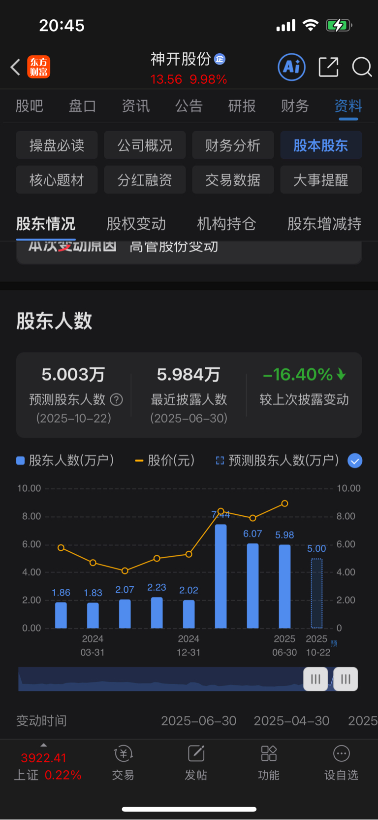 $神开股份(SZ002278)$ 股东户数越来越少,嘿嘿说明散户越来越少。看来这几天不少家人们离场了。
