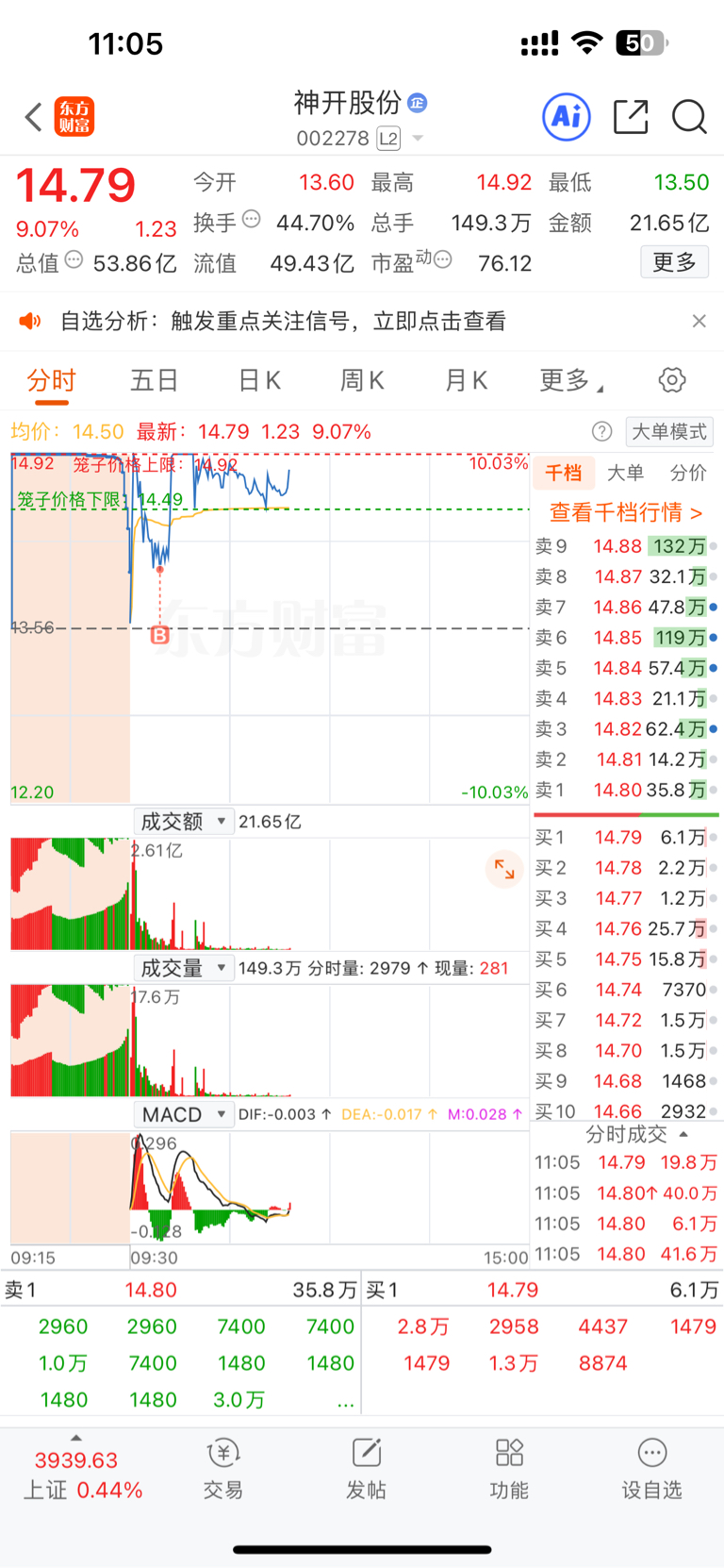 $神开股份(SZ002278)$ 盈新极致缩量不考虑,神开就是最高板的新龙头