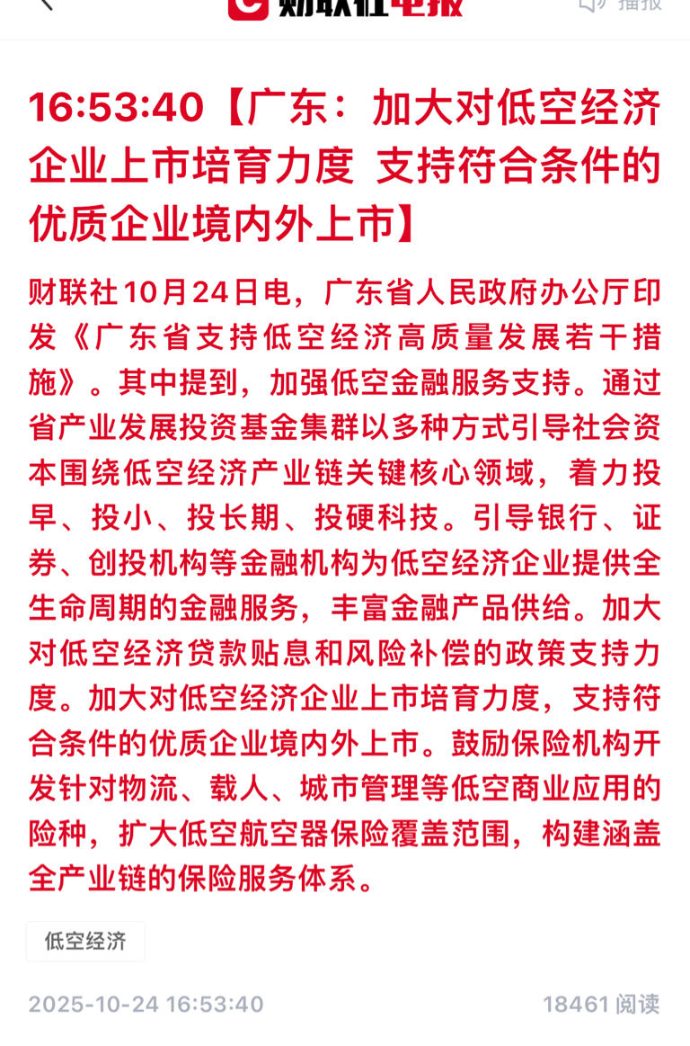 $神开股份(SZ002278)$ 利好又来了,广东印发低空经济