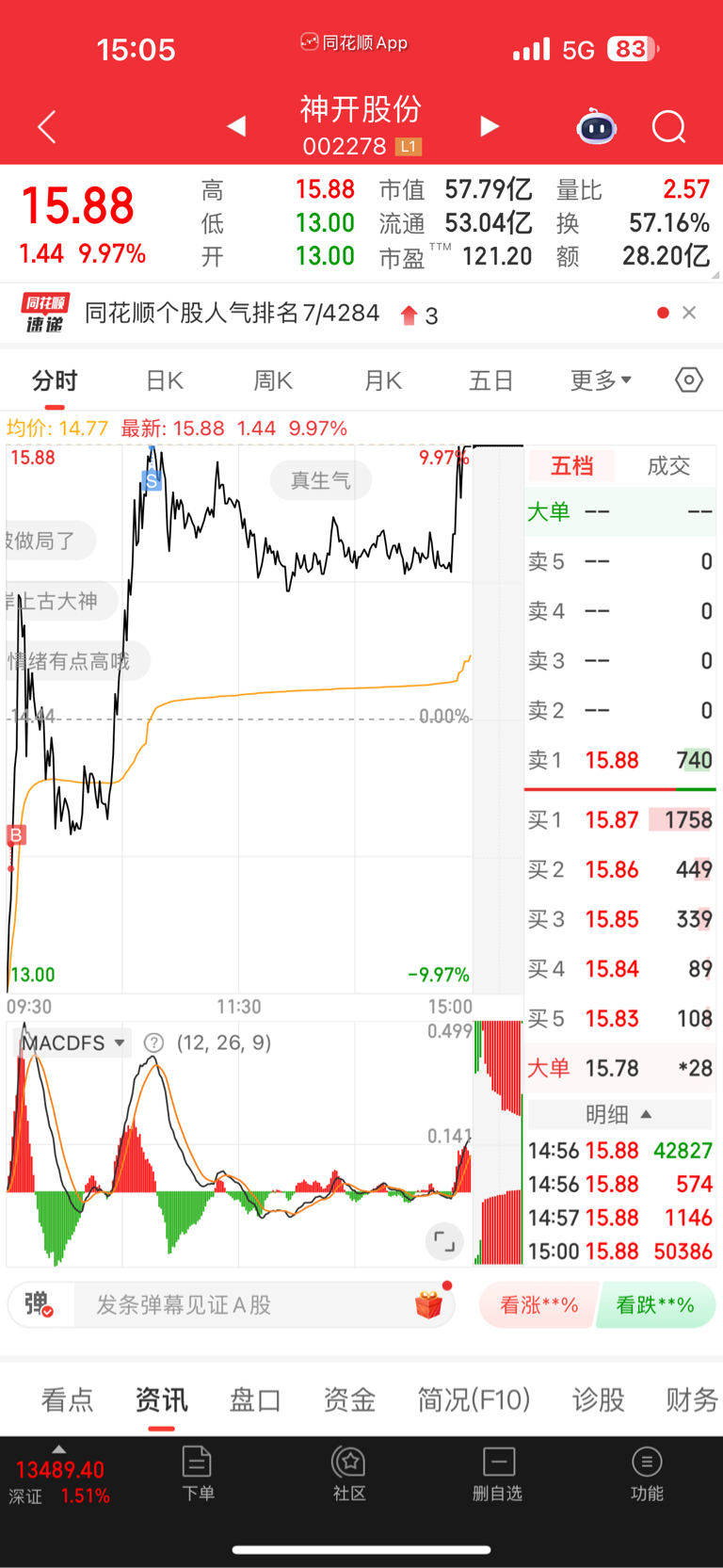 $神开股份(SZ002278)$ 集合竞价没买到,板上做t丝毫不慌利润垫厚的一批