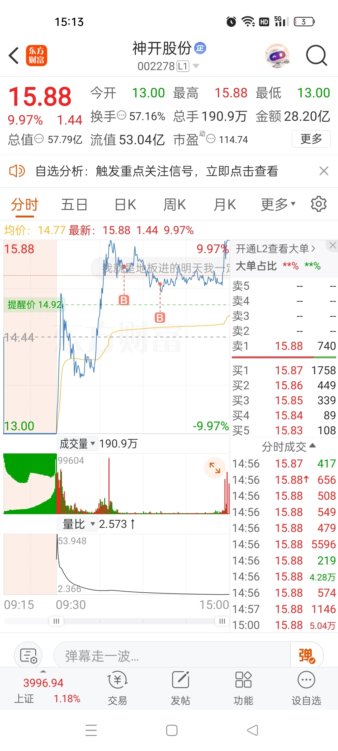 $神开股份(SZ002278)$ 14.92支撑点,追涨无风险