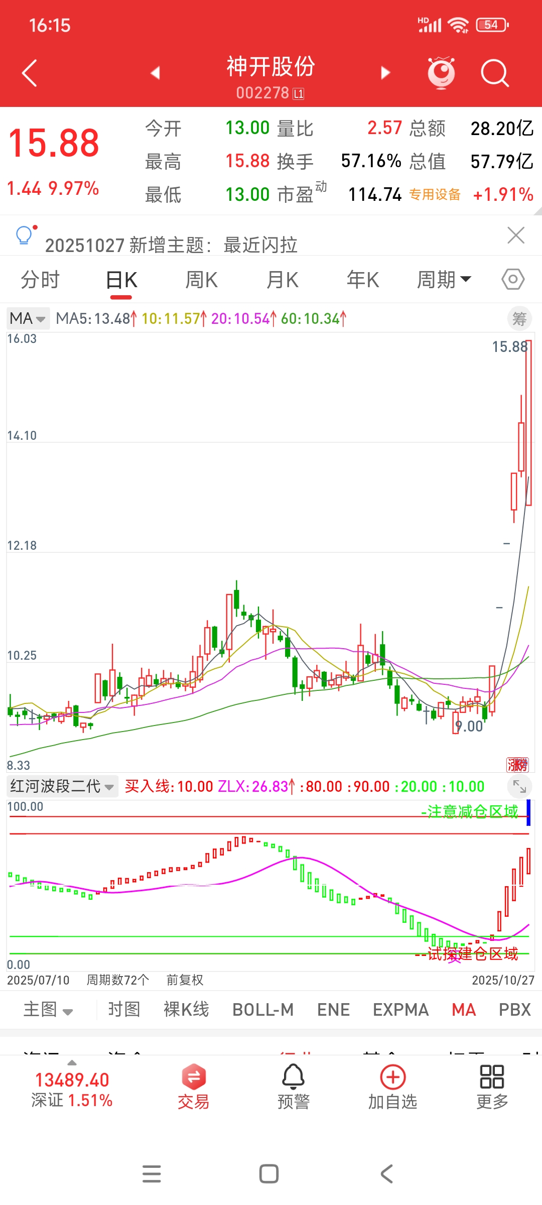 $神开股份(SZ002278)$ 我觉得已经很直观了,毕竟红柱不停,上涨不止,红柱拉长,加速不止,继续冲