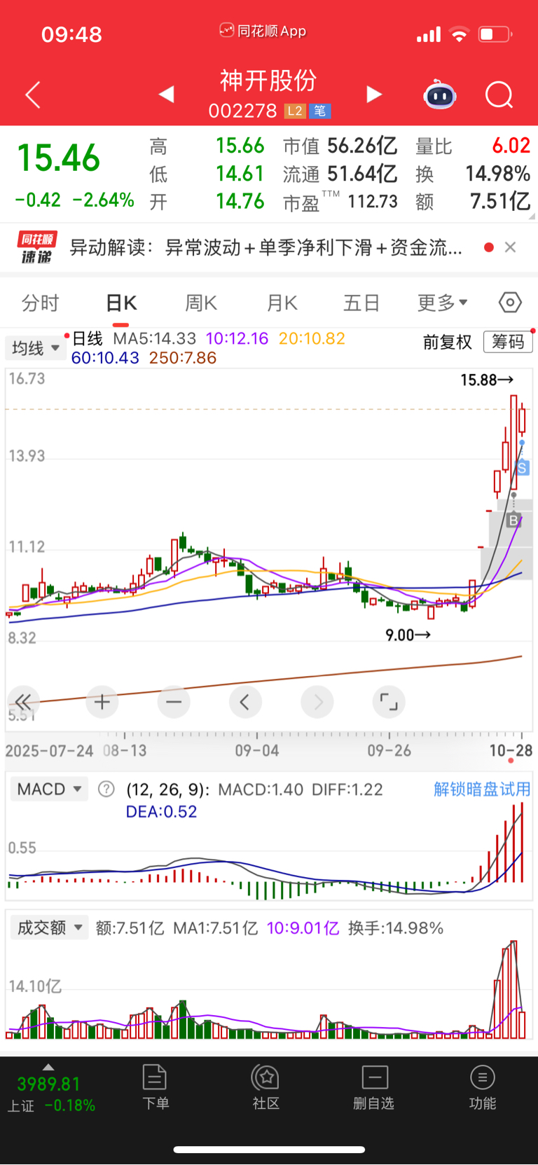 $神开股份(SZ002278)$ 感谢龙头低吸战法 走了16个点