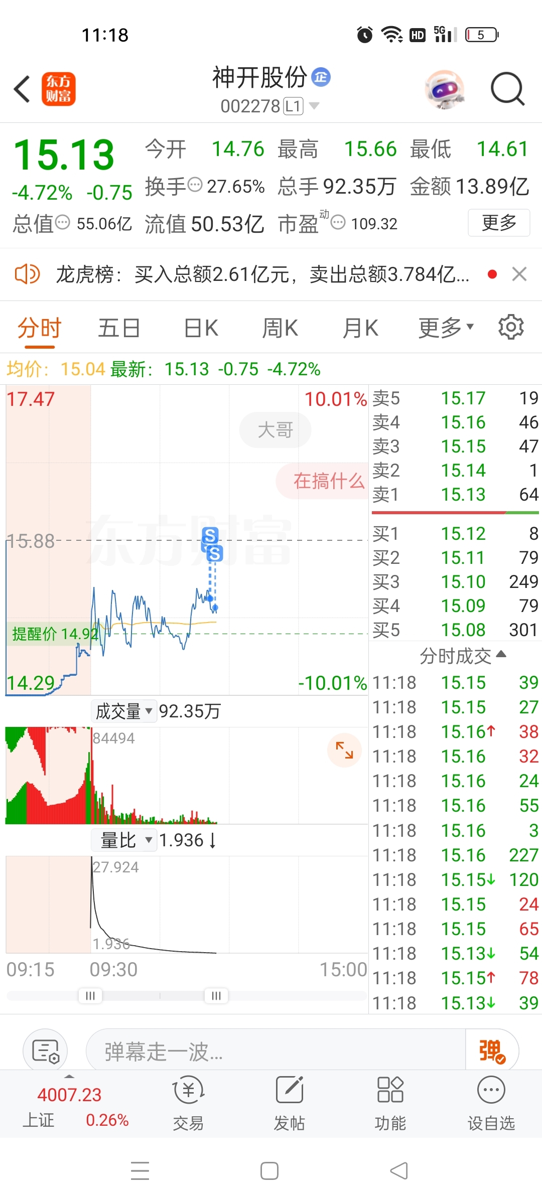 $神开股份(SZ002278)$ 买5万快钱亏了1百,感觉没机会红了
