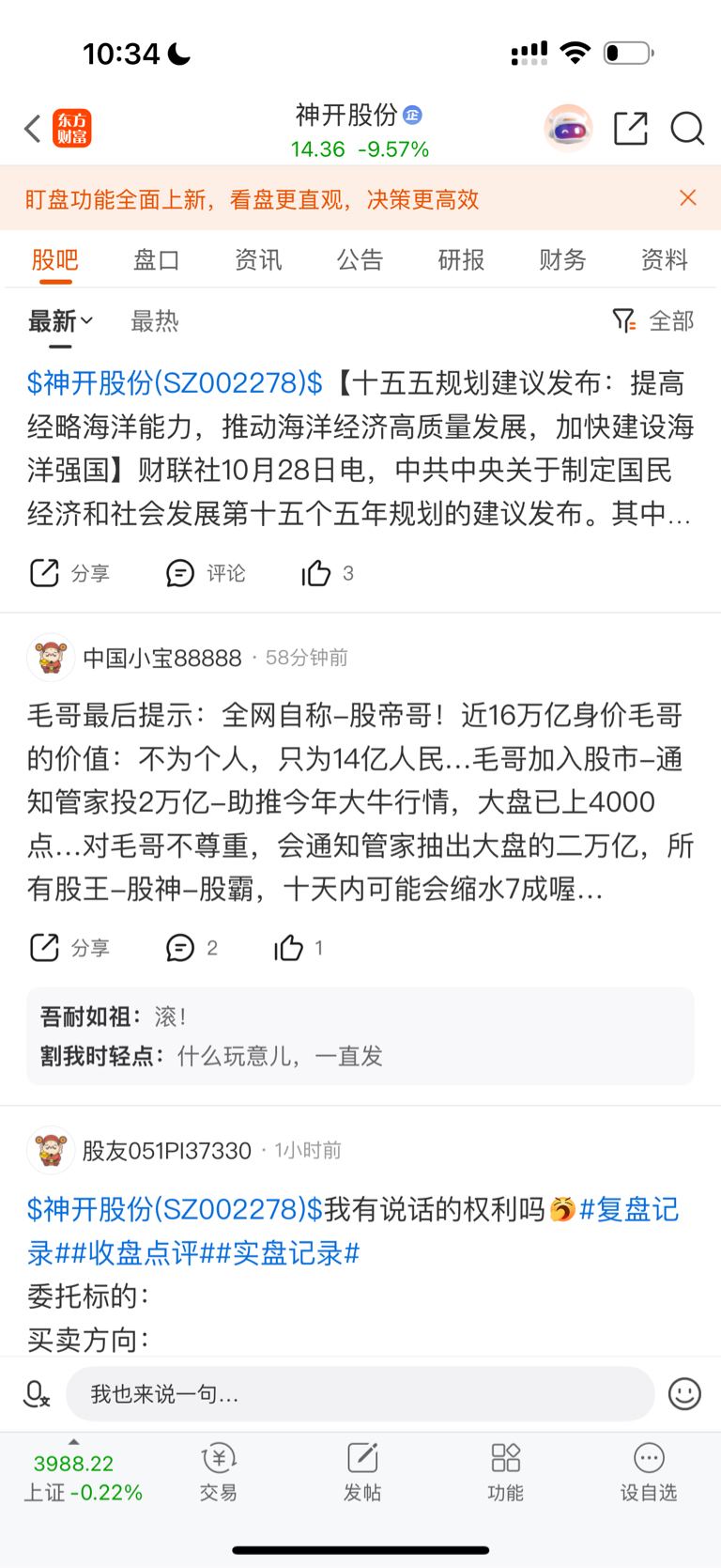 温馨提示: 1.根据《证券法》规定,禁止编造、传播虚假信息或者误导性信息,扰乱证券市场;2.用户在本社区发表的所有资料、言论等仅代表个人观点,与本网站立场无关,不对您构成任何投资建议。用户应基于自己的独立判断,自行决定证券投资并承担相应风险。《东方财富社区管理规定》