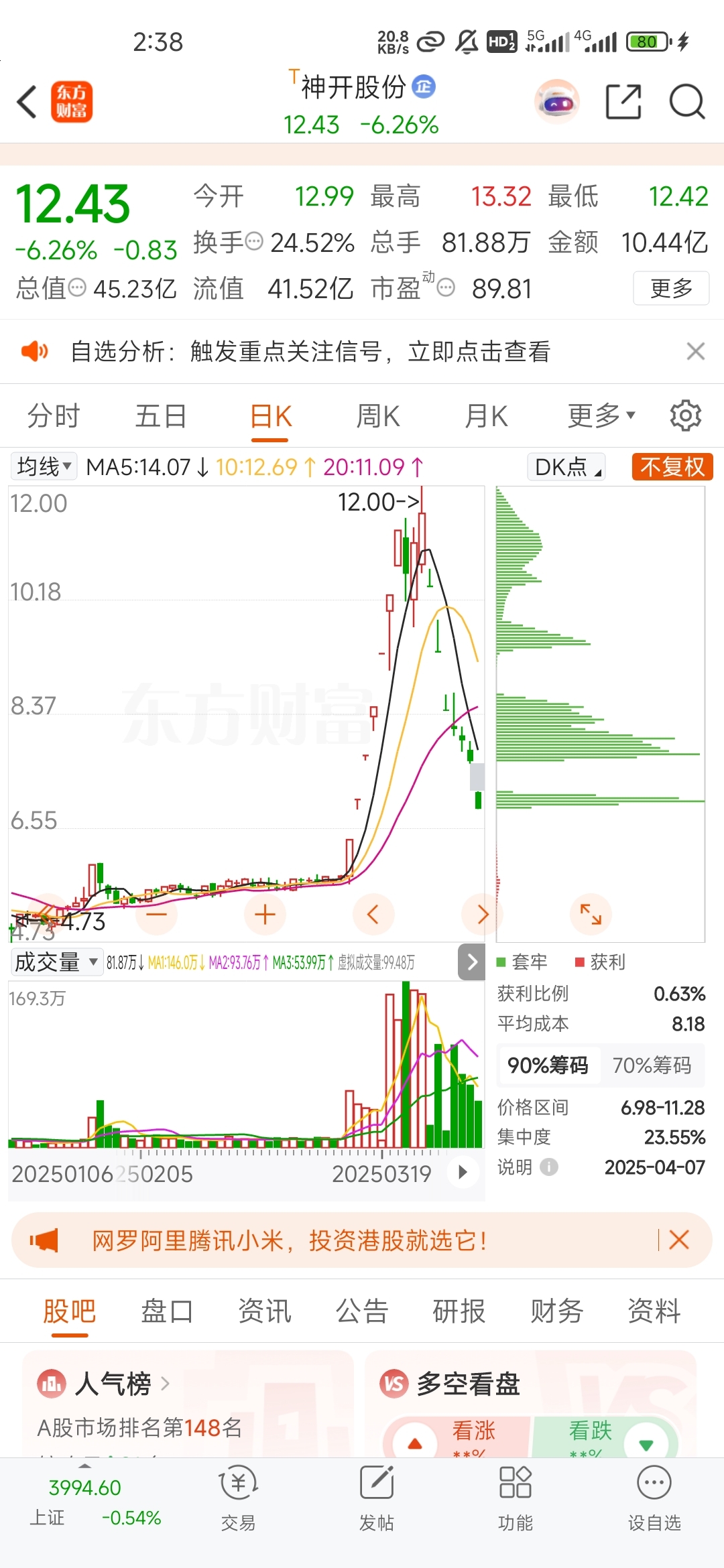 $神开股份(SZ002278)$ 一模一样吧,一样的走势,了,你们玩吧