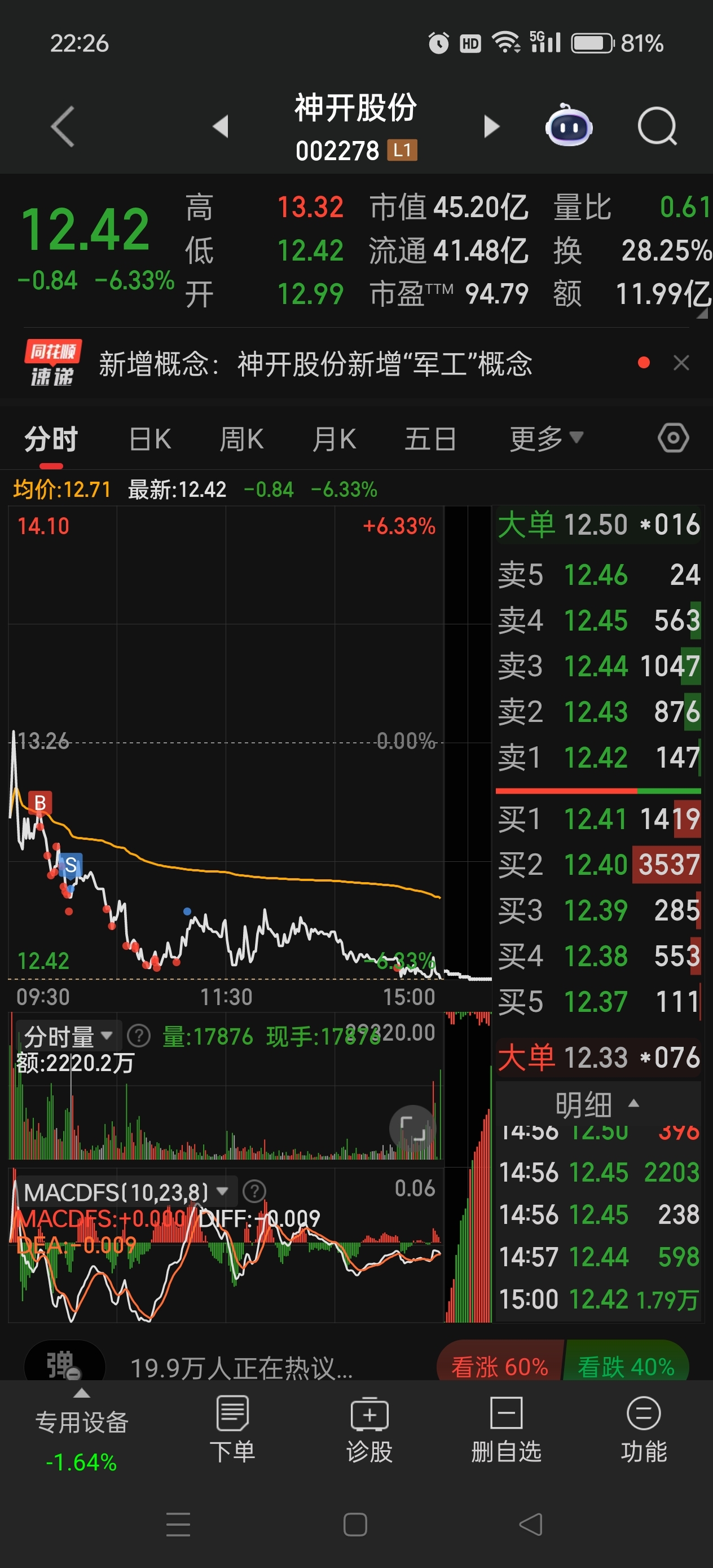 $神开股份(SZ002278)$ 根本没有底啊,连续接了2天,买不动了