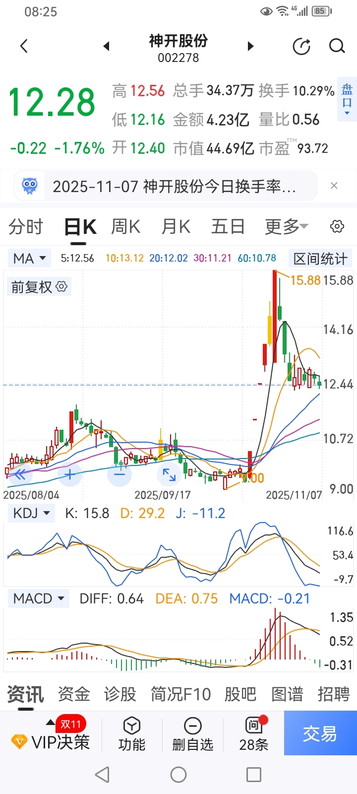 下面是神开股份的日K线图,这股是深地经济龙头,前面出现了6天5个涨停板,然后展开回调,至今调整了9个交易日,股价离20日线不远了。这股大概率在20日线附近企稳,然后展开主升第三浪,目标价价在20元以上。