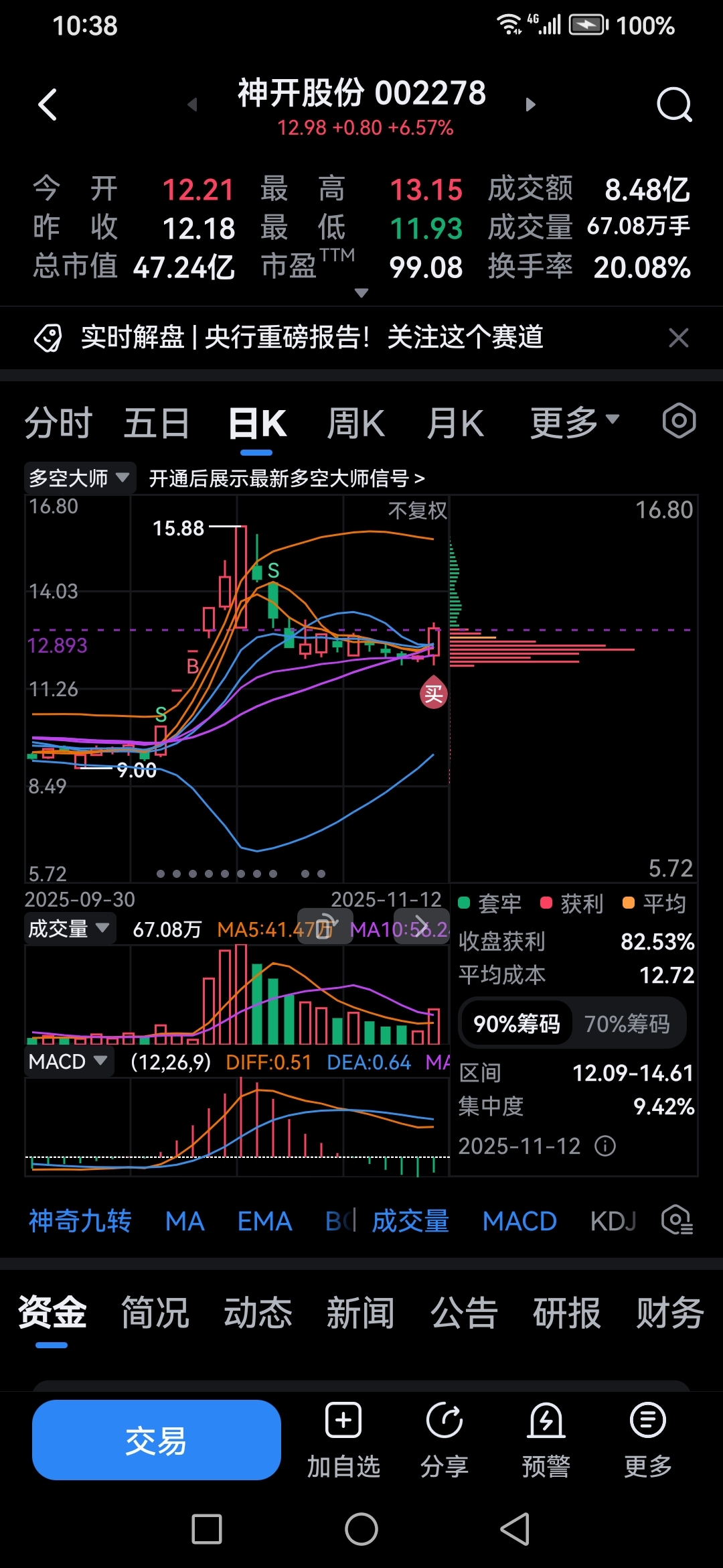 11月12号交易记录神开股份通源石油科翔股份香农芯创海峡创新四方达海科新源江波龙