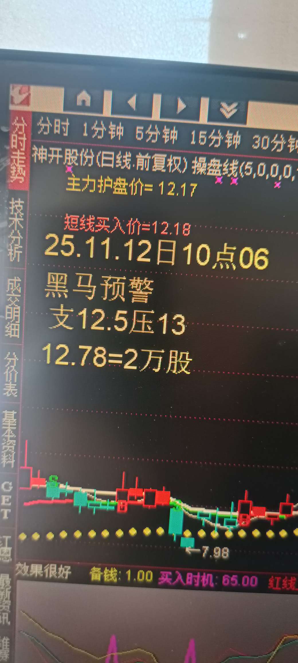 $神开股份(SZ002278)$ 今天应该跌到昨天预判的支撑位,因为昨天没跌到。