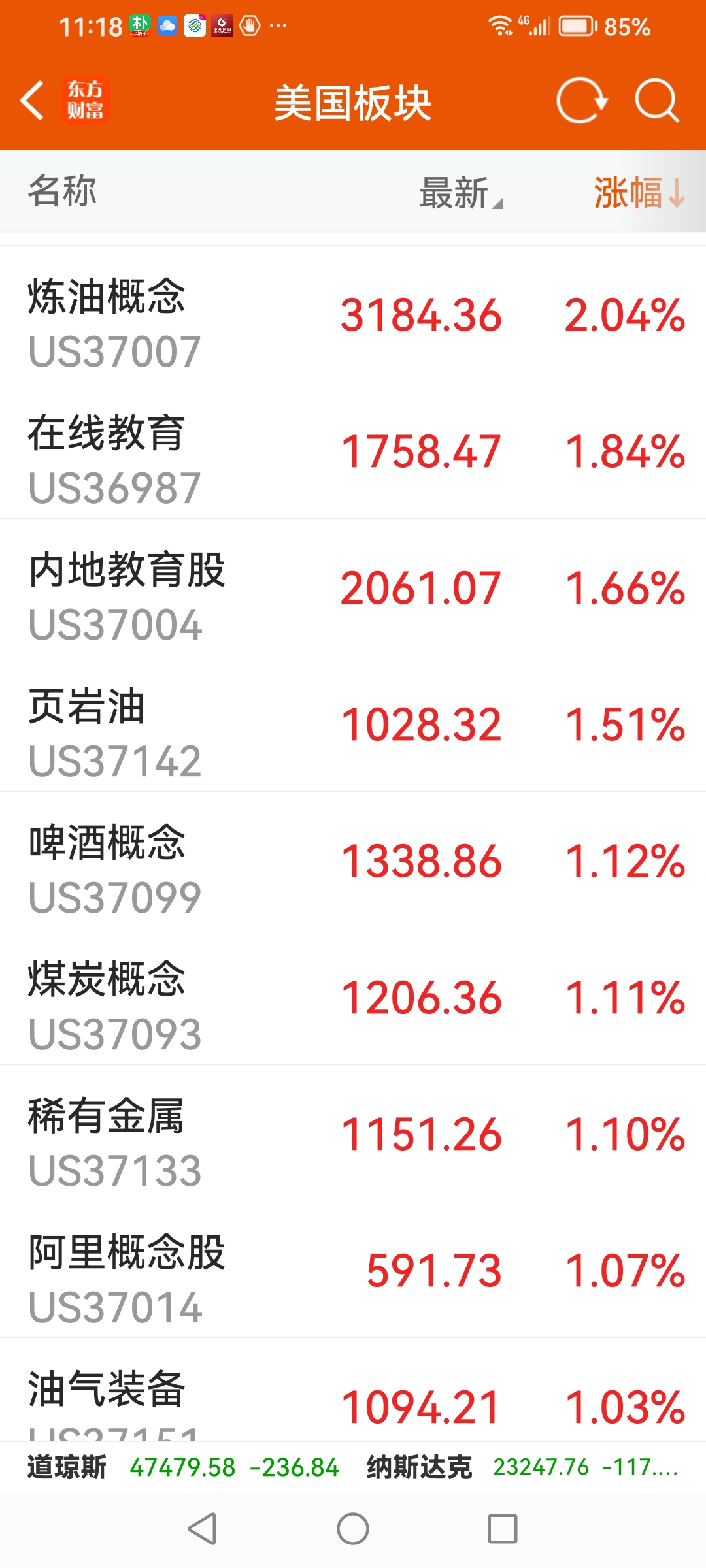 目前美股的炼油、页岩气、油服设备都涨幅居前。