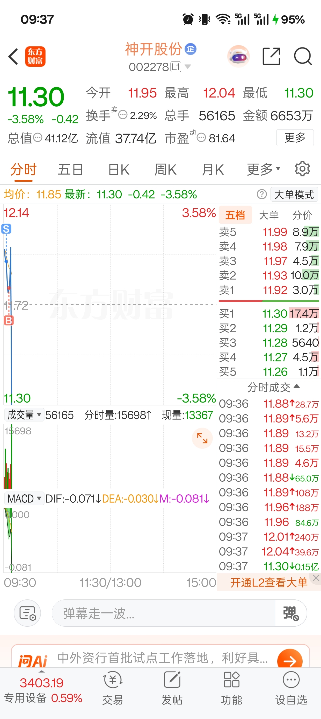 $神开股份(SZ002278)$ 是谁,在砸我的盘