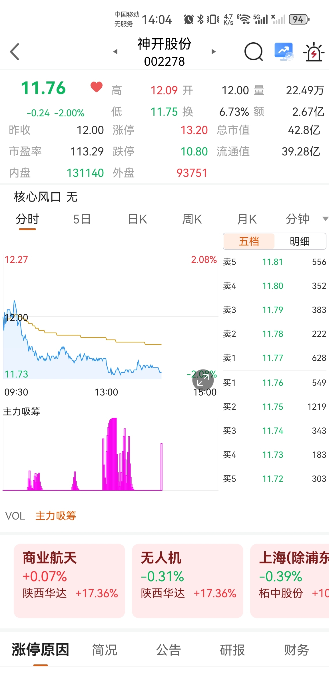 $神开股份(SZ002278)$ 主力今天吸筹盆满钵满