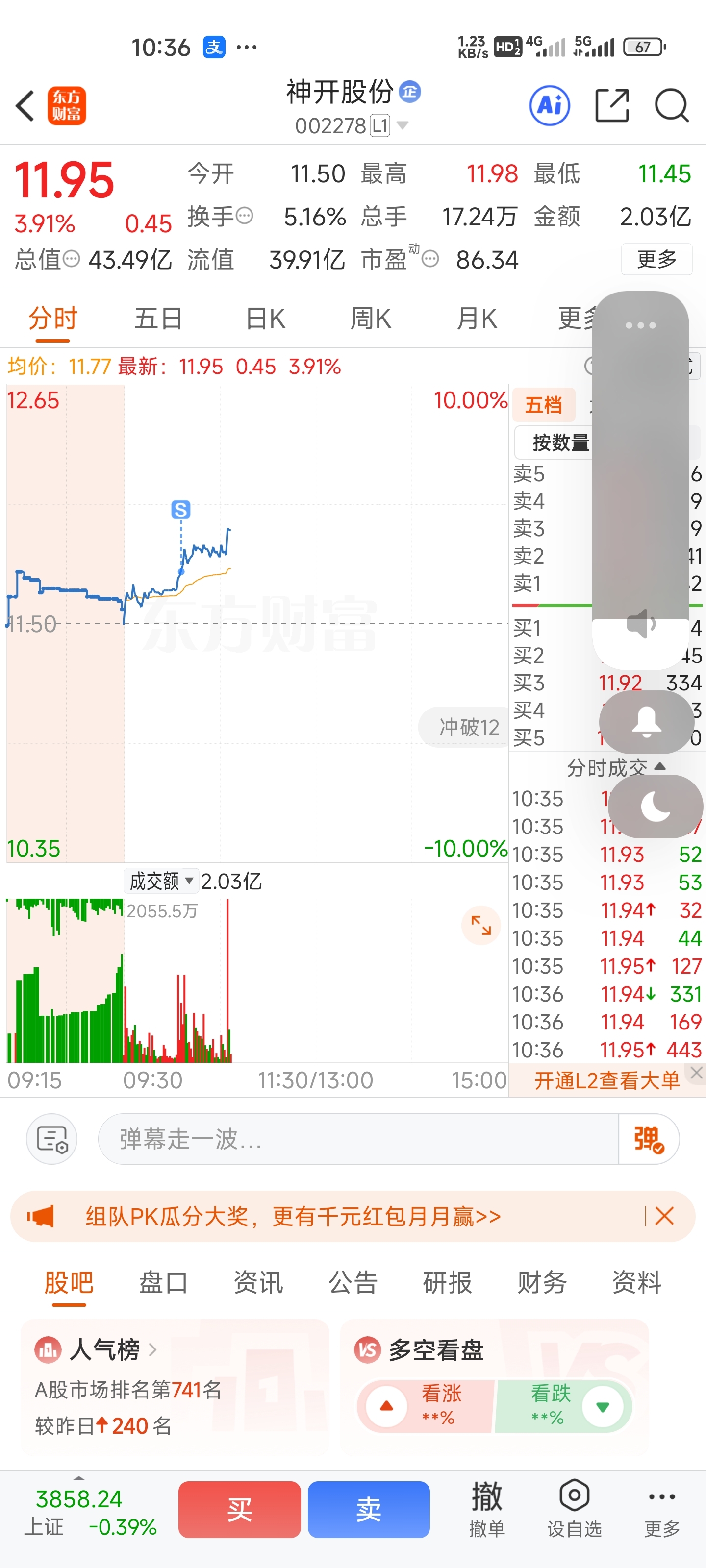 $神开股份(SZ002278)$ 主力看我割了就涨